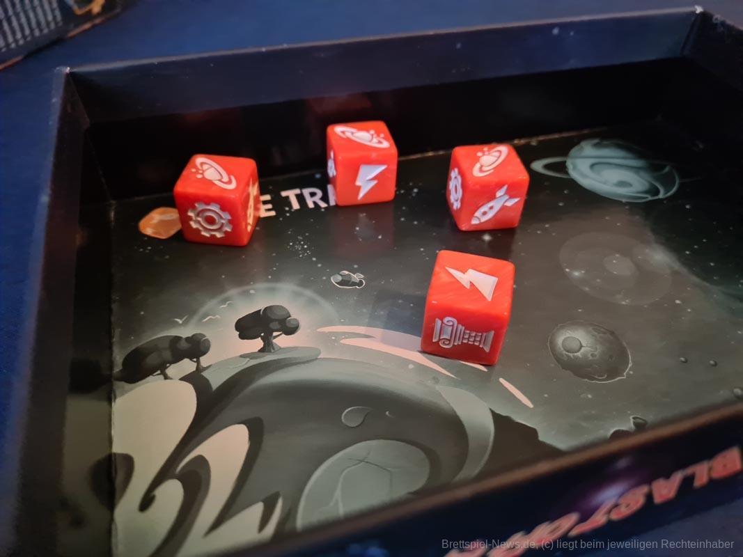 Jeden Schritt, den „Blast off“ nach vorn macht, scheint es gleichzeitig auch in die entgegengesetzte Richtung zu machen. Im Vergleich zum Original hält es sich somit in der Waage. Es gibt Bereiche, die sich verbessert haben und genauso viele Bereiche, in denen es schwächer ist als der Vorgänger. Unterm Strich verändert das die Zielgruppe des Spiels. Die große Spieltiefe, die „Tiny Epic Galaxies“ noch auszeichnete hat „Blast off“ aufgrund der Vereinfachung auf der Strecke gelassen, womit sich das Spiel besser mit jüngeren oder unerfahreneren Spielgruppen spielen lässt. Während das Original Spielgruppen noch etwas forderte, versucht es „Blast off“ mit der „Kuschelmethode“. Die Würfel rücken in „Blast off“ zudem viel mehr in den Fokus, was wieder gleichzeitig gut und schlecht ist. So muss die aktive Person nun entscheiden, welche Würfel zuerst aktiviert werden, um den anderen nicht mehr die Möglichkeit zu geben, den Aktionen zu folgen. Gleichzeitig ermöglicht das eine Art „Schneeball-Effekt“. Da so Personen vom Folgen einer Aktion ausgeschlossen werden können (indem einfach Aktionen zuerst gemacht werden, die einer bestimmten Person überhaupt nichts bringen), ist es für diese schwieriger einen Fuß ins Spiel zu bekommen, während sie von anderen einfach überrollt werden.