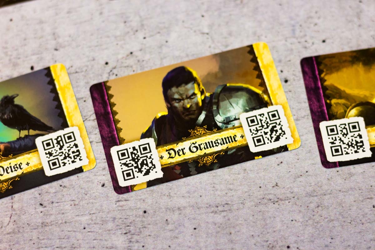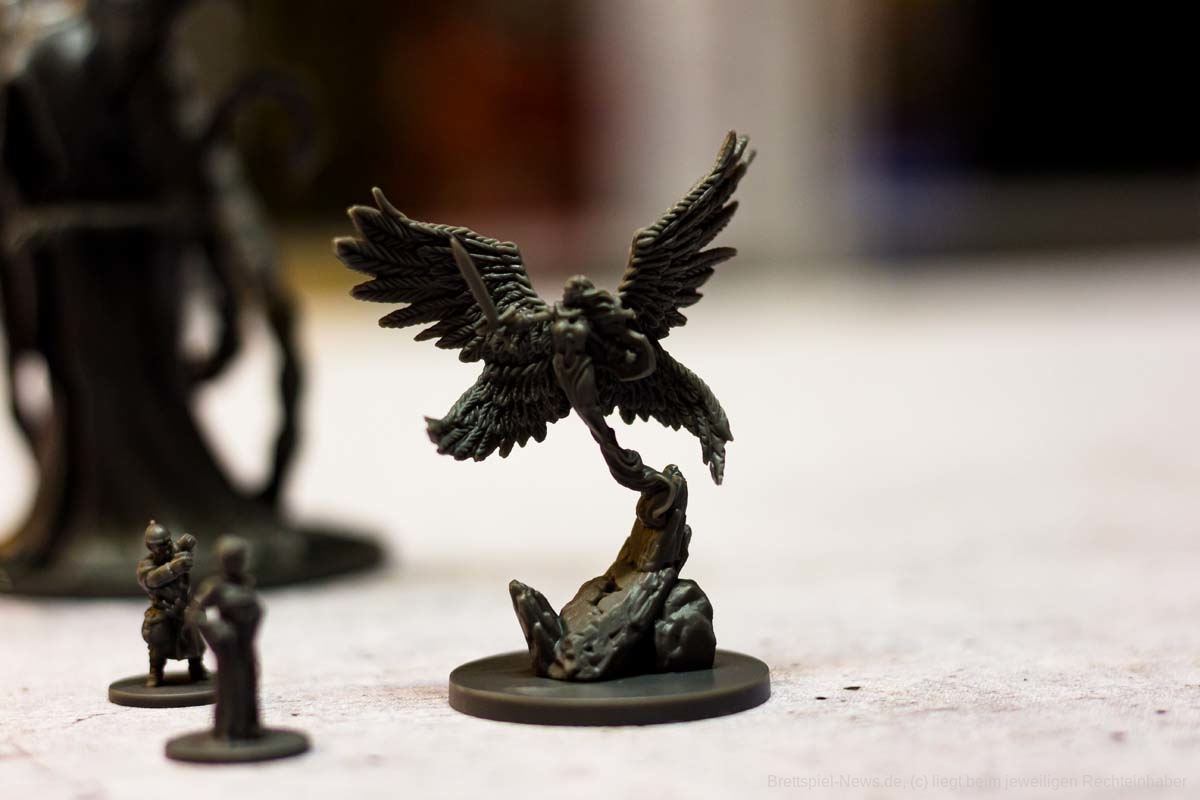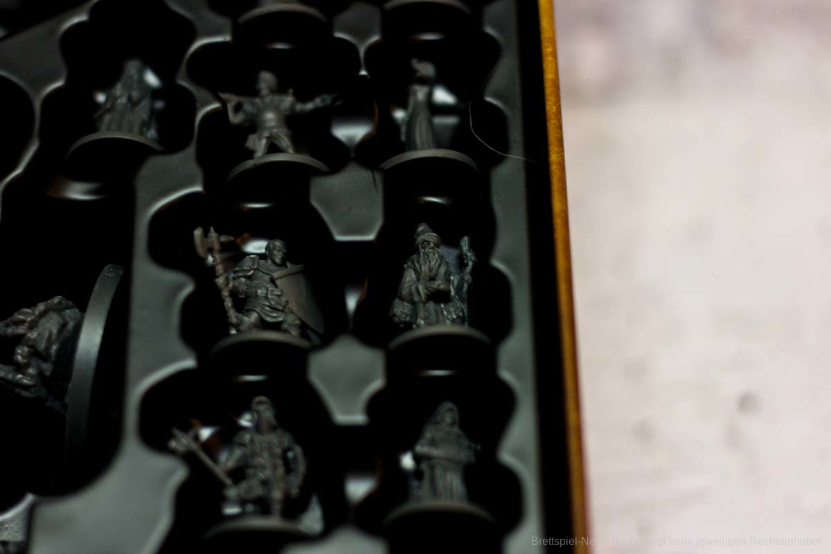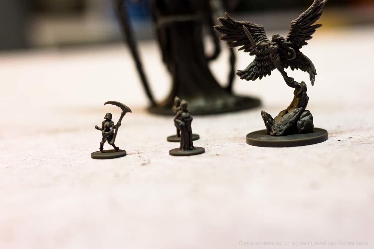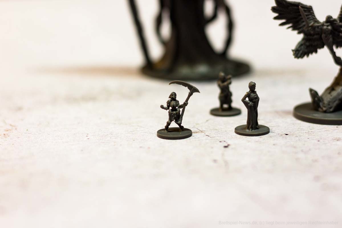 In Sachen Miniaturen ist „Destinies“ zusätzlich mein eigenes Negativbeispiel geworden. Alle Miniaturen, bis auf die großen Bossgegner, besitzen absolut keine Daseinsberechtigung. Qualitativ sind sie zwar klasse, jedoch sind alle Charaktere so klein, dass es ein richtiges Rätselraten ist, um die in der App angezeigte Figur an den richtigen Ort zu setzen. Eigentlich sollen die Figuren der Spielgruppe symbolisieren, wo eine Geschichtsrelevante Person steht. Genau diese Anzeige wird jedoch in der App genauso angezeigt und zusätzlich würde ein kleiner Pappmarker die gleiche Funktion problemfreier erledigen.
