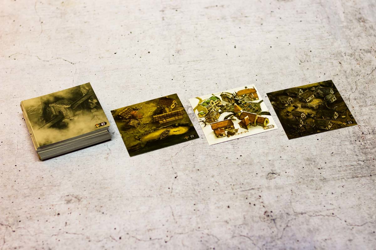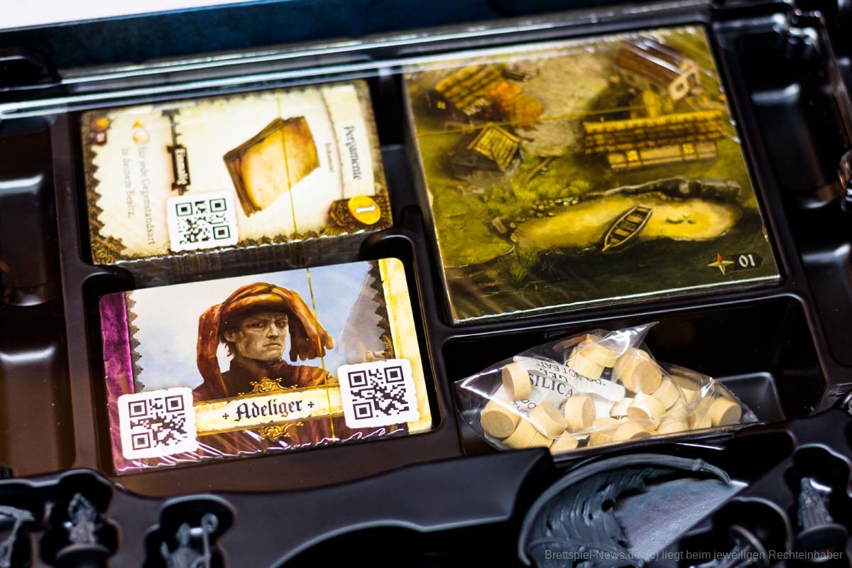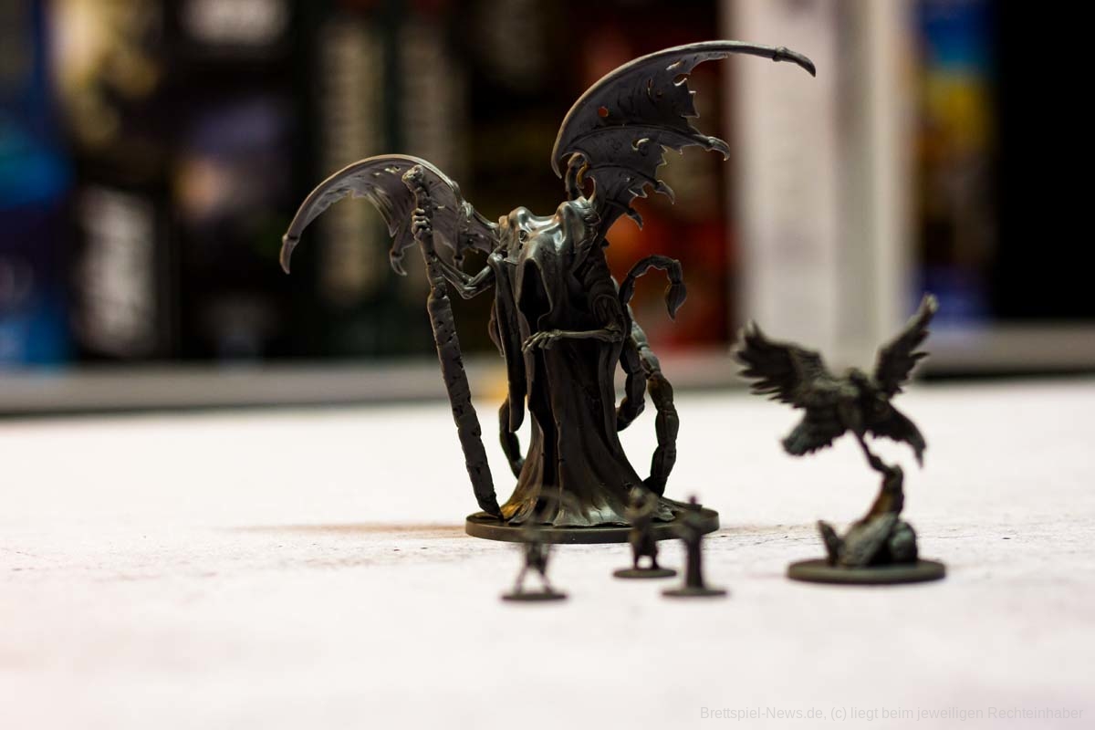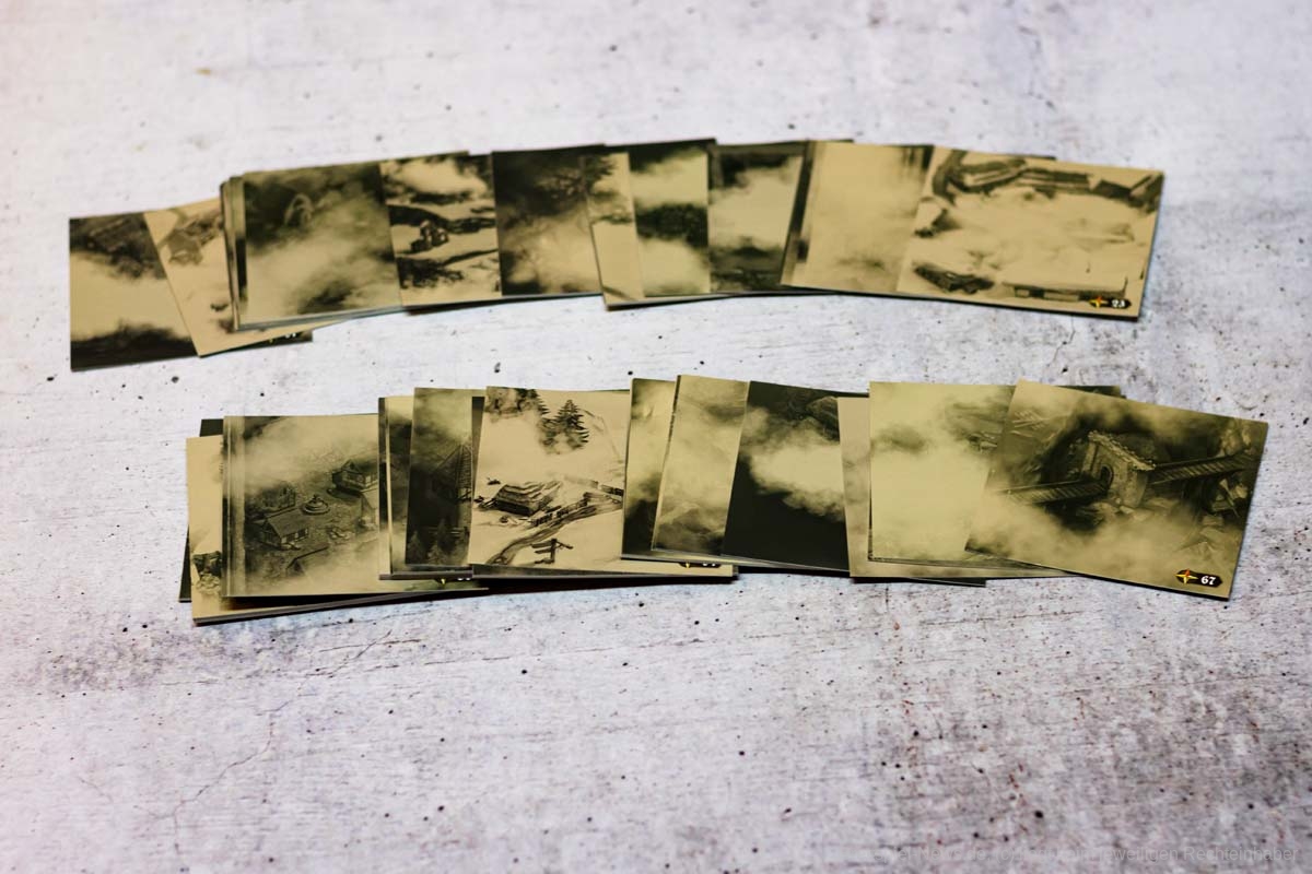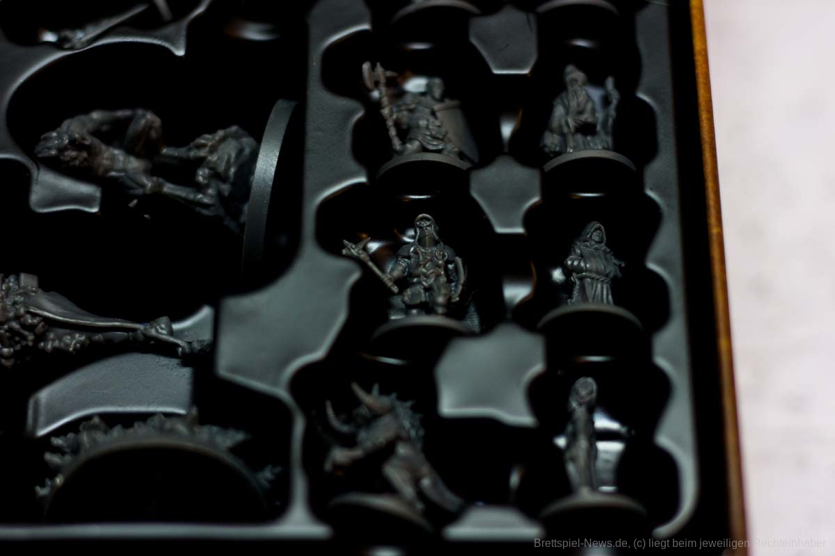In Sachen Miniaturen ist „Destinies“ zusätzlich mein eigenes Negativbeispiel geworden. Alle Miniaturen, bis auf die großen Bossgegner, besitzen absolut keine Daseinsberechtigung. Qualitativ sind sie zwar klasse, jedoch sind alle Charaktere so klein, dass es ein richtiges Rätselraten ist, um die in der App angezeigte Figur an den richtigen Ort zu setzen. Eigentlich sollen die Figuren der Spielgruppe symbolisieren, wo eine Geschichtsrelevante Person steht. Genau diese Anzeige wird jedoch in der App genauso angezeigt und zusätzlich würde ein kleiner Pappmarker die gleiche Funktion problemfreier erledigen.