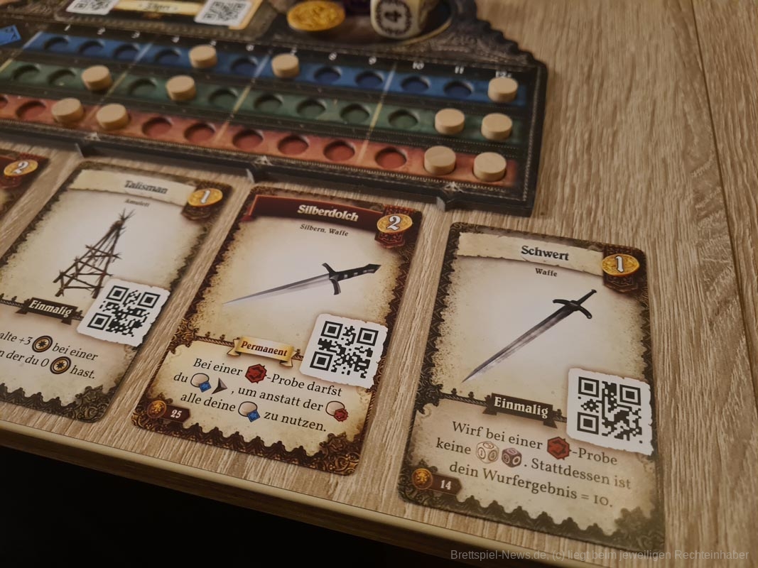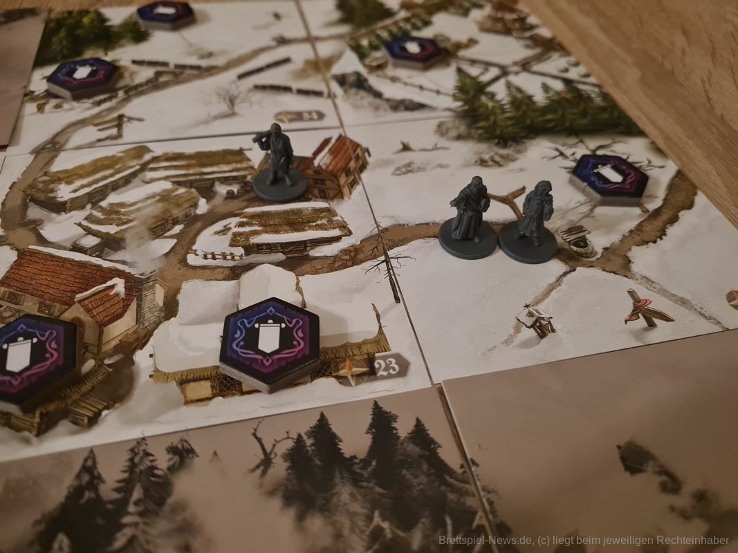 Der große Elefant im Raum ist für viele die App. Bei diesem Thema muss klar und deutlich gesagt werden, wer Brettspiele mit Apps nicht mag, muss die Finger von „Destinies“ lassen. Die App bildet das Herz, die Leber und die Lunge des Spiels. Ohne die App lässt sich das Spiel keinesfalls spielen. Zusätzlich sind sogar einige Brettspielkomponenten völlig obsolet, da die App diese Funktionen völlig einnimmt. So haben wir irgendwann komplett auf das Spielfeld in der Mitte verzichtet, da die App alle Veränderungen und Anzeigen vollautomatisch ausführte. Das Gesuche von Markern und Spielmaterial viel völlig weg, ohne dass wir es für unser Spielgefühl gebraucht hätten. Meine bessere Hälfte fasste es als Handyspiel mit Brettspielkomponenten zusammen, dem ich nach kurzem Überlegen uneingeschränkt zustimmen musste.