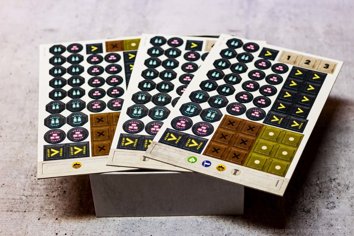 Persönlich hat uns allerdings der Modus für zwei am besten gefallen. Für Spielabende in größerer Runde würden wir das Spiel eher nicht empfehlen, da dann die Wartezeit zum Problem wird. Wir spielen bereits zu zweit etwa 90 Minuten und können Wartezeiten gut nutzen, um den nächsten Zug zu planen.