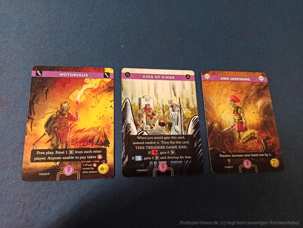 Wessen Interesse jetzt geweckt wurde, sollte noch wissen, dass es auch das eigenständige Spiel „Imperium Legends“ gibt, das die gleichen Regeln wie „Imperium Classics“ nutzt, aber andere Völker bietet. Beide Spiele können beliebig miteinander kombiniert werden und werden von der Spieleschmiede ins Deutsche lokalisiert.