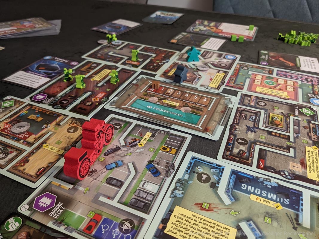 Wir haben sowohl den kooperativen Spielmodus gegen die Zombie-KI als auch den kooperativen Spielmodus, in dem eine Person am Tisch die Rolle der Zombies übernommen hat, getestet. Das Spielgefühl hat sich für uns in den beiden Modi sehr stark unterschieden.