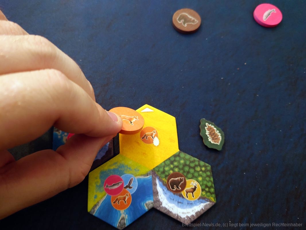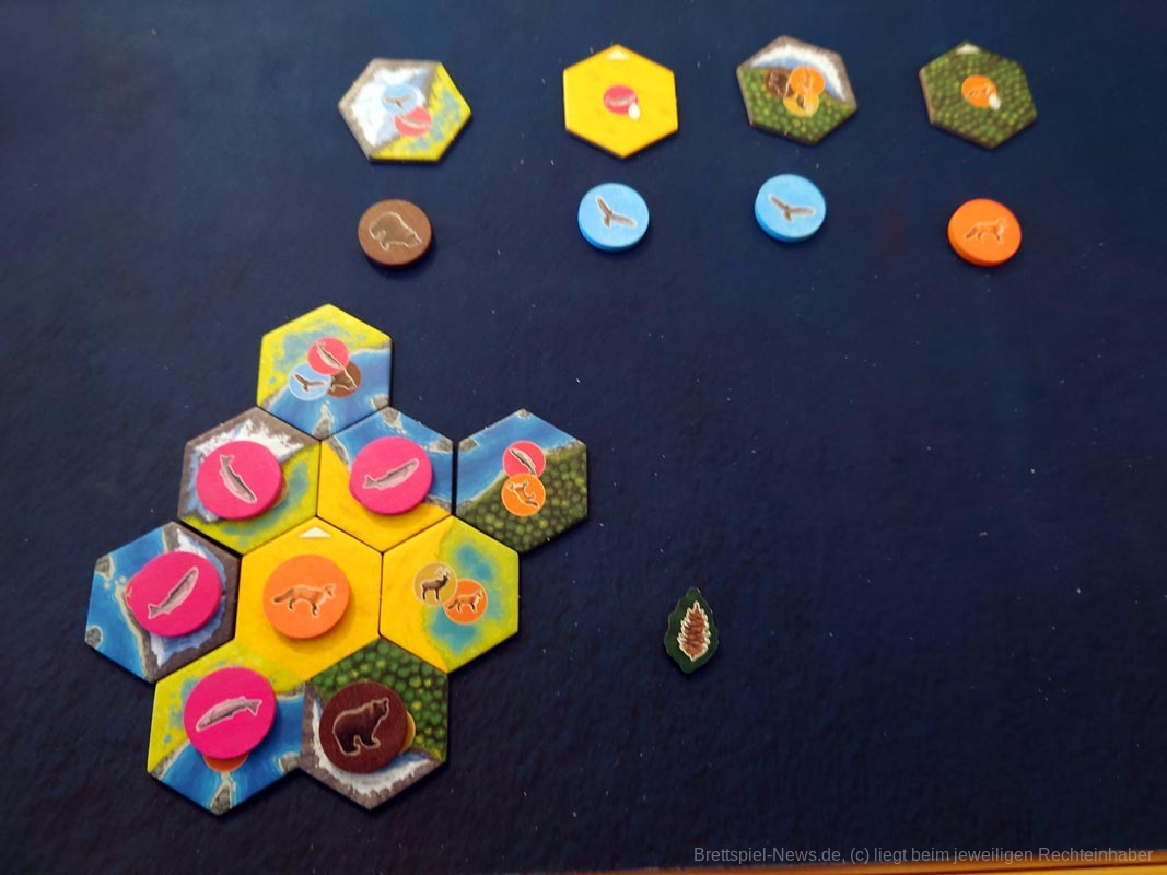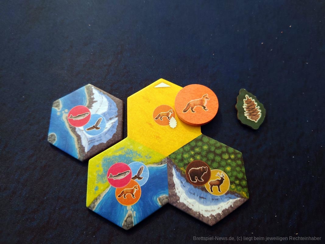 Doch auch mir als Vielspieler bereitet „Cascadia“ Freude. Das liegt daran, dass es sich hierbei um ein Spiel der Marke „Leicht zu lernen, schwer zu meistern“ handelt. Bei meinen Partien hatte ich eine fortlaufende Lernkurve und wurde immer besser. Die vielen kleinen Entscheidungen sind relevant für die Punkteausbeute am Ende der Partie. Das fängt bei der Wahl des Plättchens mit Tier an und hört beim sinnvollen Anlegen in die eigene Landschaft auf.