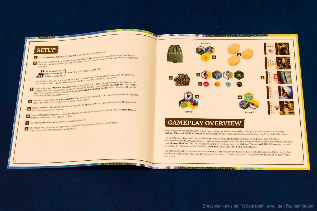 Das schnelle Aufbauen, gepaart mit der kurzen Solo-Spielzeit, motivierte mich bisher immer wieder, mit „Cascadia“ - auch allein - am Spieltisch Platz zu nehmen, um zwischendurch am Tag schnell eine Partie zu spielen. Das schafften bisher nur die wenigsten Spiele, was es für mich zu einem der besten des aktuellen Jahrgangs macht.