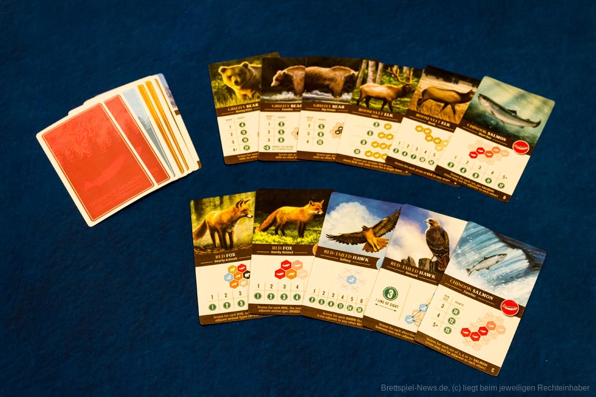Reizvoll finde ich ebenfalls die viele Variation bezogen auf die Regeln, um Punkte zu erzielen. Durch die vier verschiedenen unterschiedlichen Wertungskarten pro Tierart entsteht fast jedes Mal eine neue Herausforderung, die manchmal durchaus fordernd sein kann.
