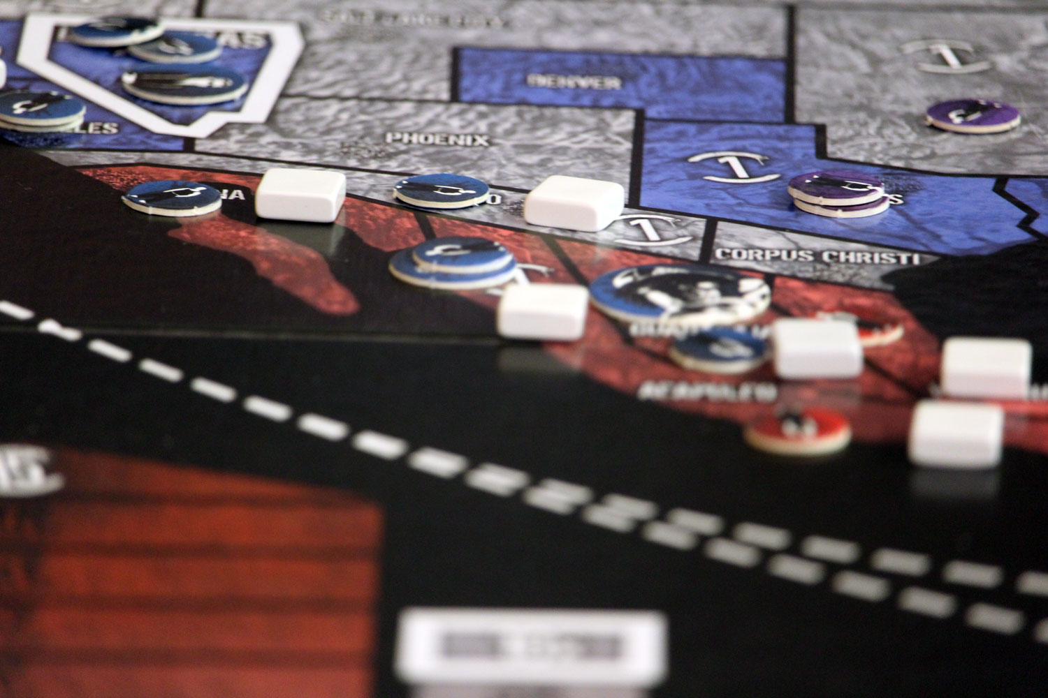 Ressourcen-Phase wird in blauen und roten von Spielern kontrollierten Gebieten Geld verdient bzw. Drogen angebaut. In Städten verdreifachen sich die Einnahmen. Blaue Gebiete bringen 1 bzw. 3 Millionen Dollar pro Runde ein. Rote Gebiete 1 bzw. 3 Päckchen Drogen.