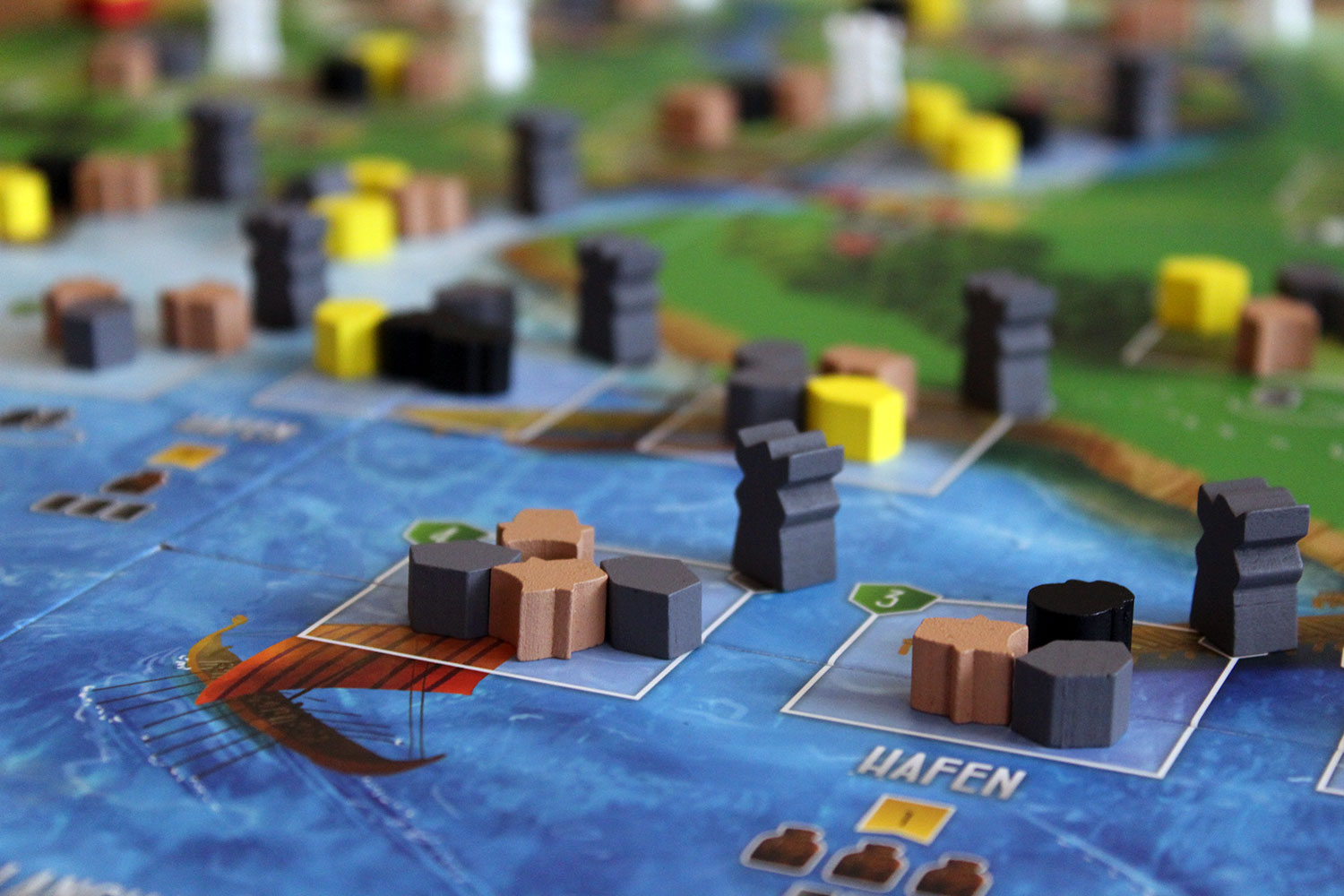 Das Spielfeld wird auf dem Tisch bereitgelegt. Die Dorfbewohnerkarten werden gemischt. Jeder Spieler bekommt fünf Karten und behält drei davon. Nun erhält jeder Spieler noch einen schwarz gefärbten Arbeiter, zwei Münzen eine Schiffskarte und drei Marker, die auf die jeweiligen Leisten gelegt werden.