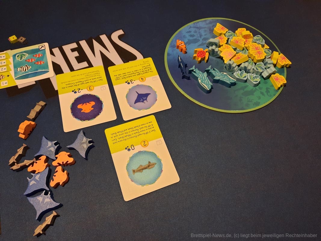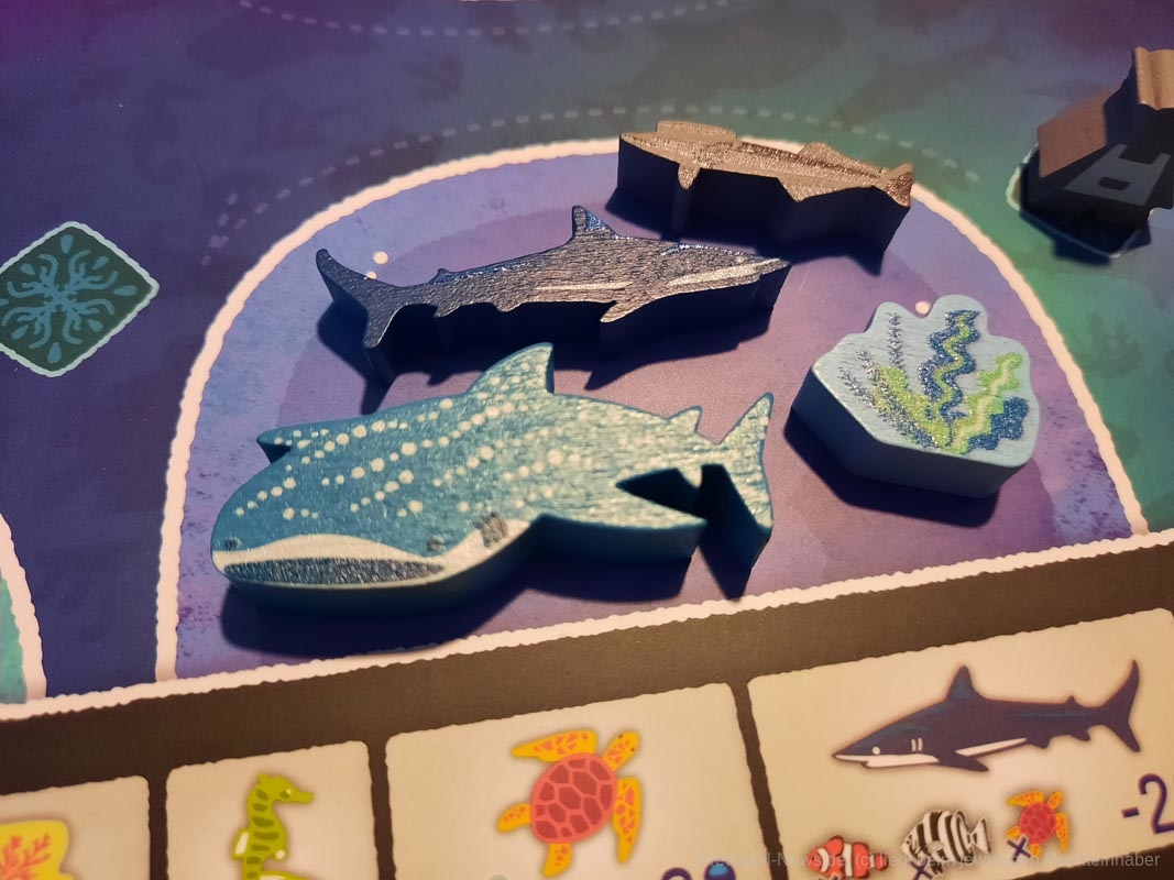 Auf dem Extratableau mit den Korallen werden zu Beginn einfach fünf zufällige Meeresbewohner platziert. Ein Walhai ist sehr selten und bringt die meisten Punkte im Spiel. Sollte ein solcher zufällig auf dem Tableau landen hat die Startperson einen kleinen Vorteil und kann sich einfach den seltensten Meeresbewohner im Spiel kaufen.
