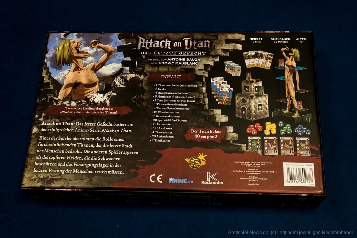 Sich spielerisch in der Höhe auszutoben ist erfrischend anders. Die Optik von „Attack on Titan: The Last Stand“ ist allerdings für Personen, die weder Manga noch Anime kennen, etwas gewöhnungsbedürftig. Fragen wie "Warum ist der Titan nackt und wieso hat er keine Genitalien?" muss man der Spielgruppe erst mal erklären. Deshalb richtet sich das Spiel wohl eher an Fans der ‚Attack on Titan‘-Reihe.