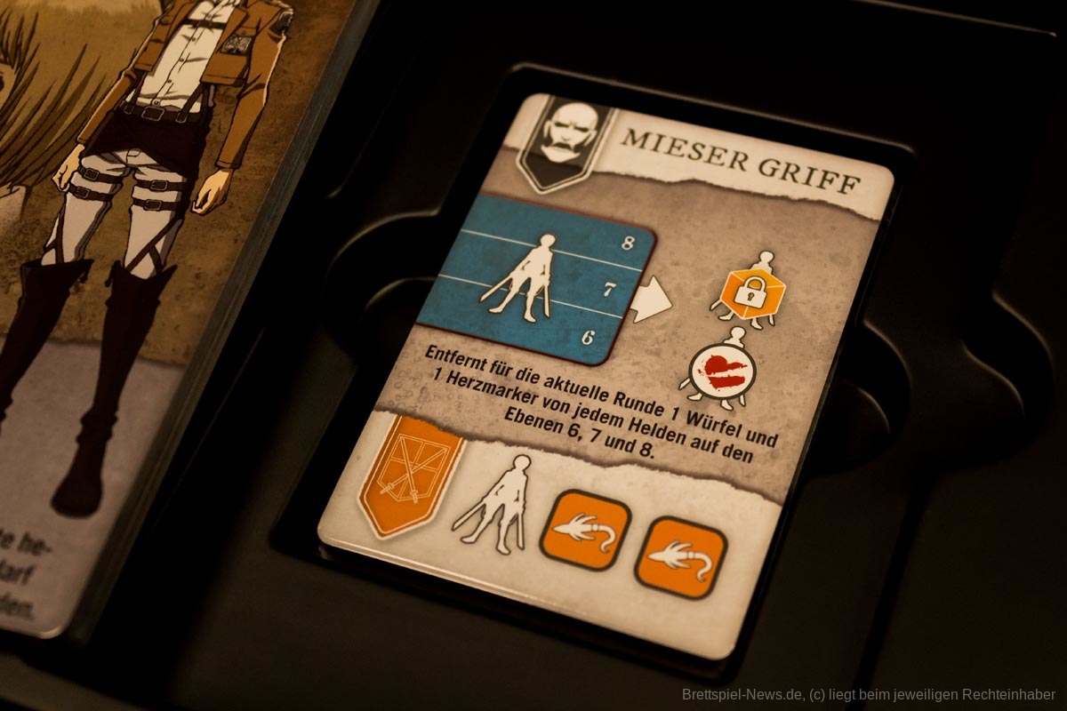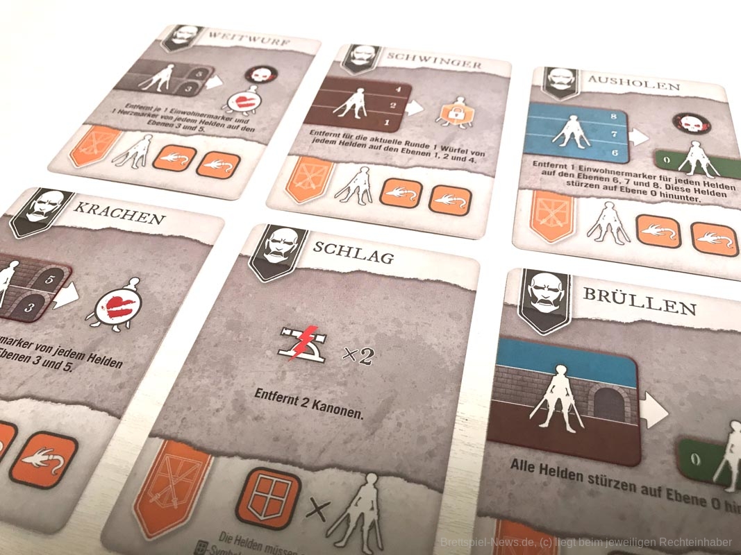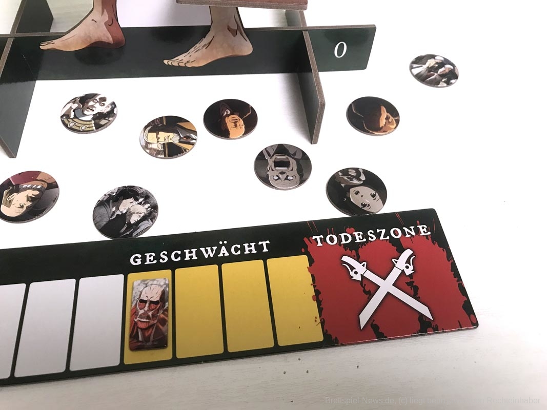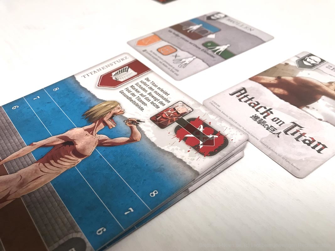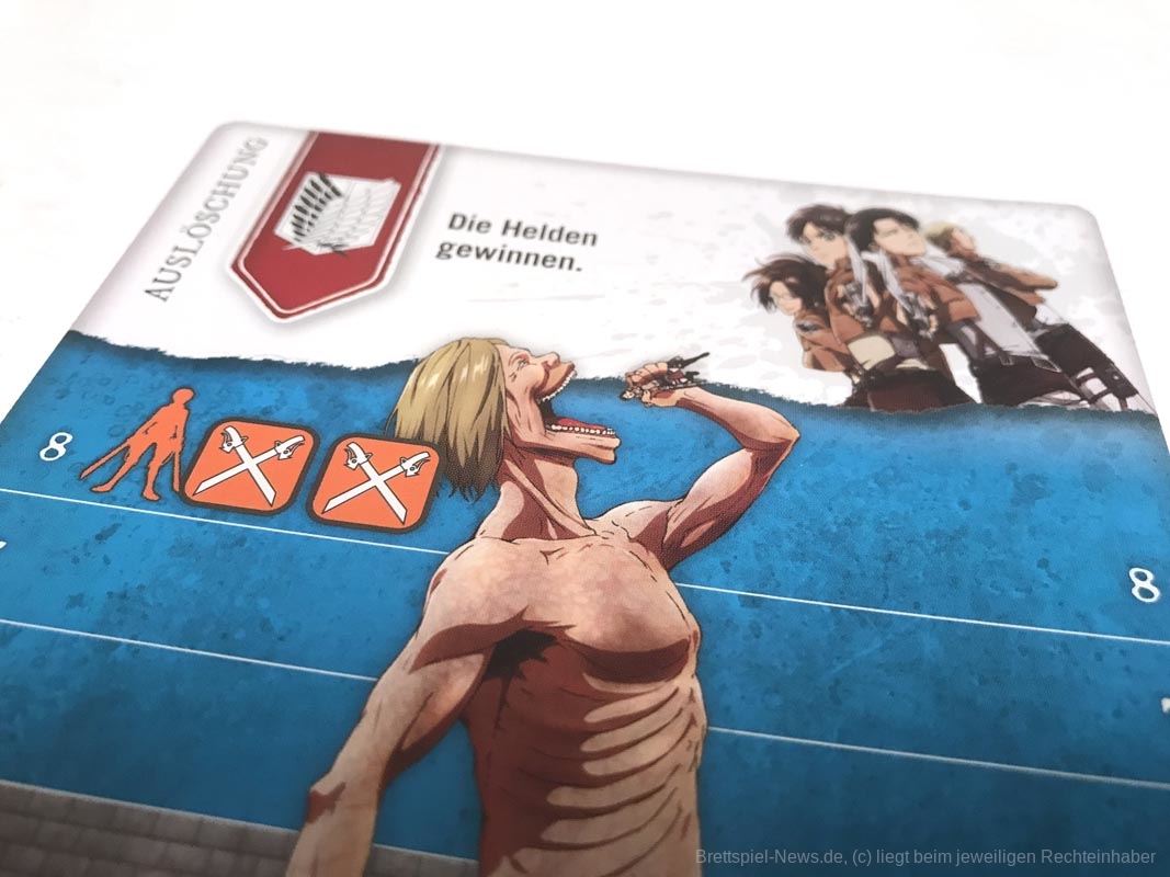 In den ersten Partien wirkt der Titan sehr übermächtig. Doch sobald die Spielgruppe die Aktionskarten des Titanen kennt, wird das Spiel ausgeglichener. Außerdem hat die Größe der Gruppe einen erheblichen Einfluss, wie ausgeglichen sich „Attack on Titan: The Last Stand“ spielt. Optimal fanden wir vier bis fünf Personen. Eine Partie spielt sich schnell und die Spielzüge ziehen sich nicht in die Länge. Genau richtig für den Grad der Herausforderung.