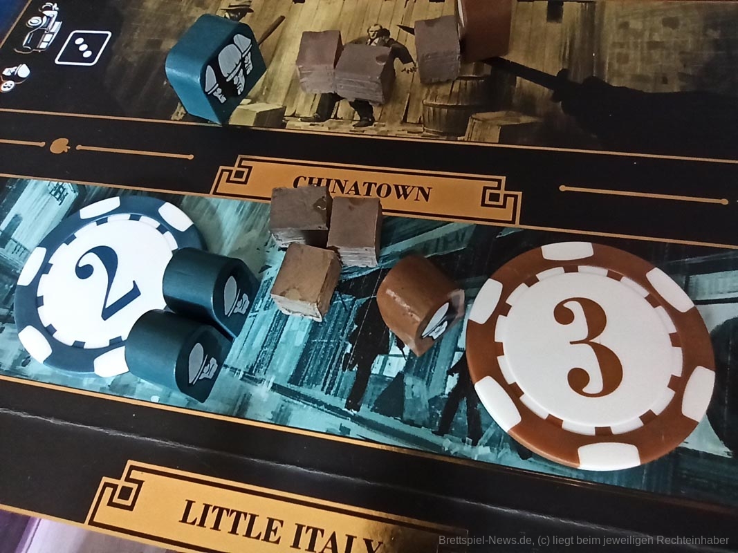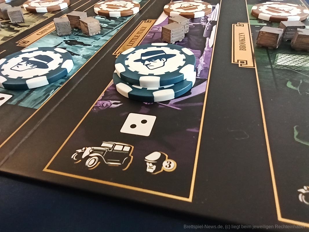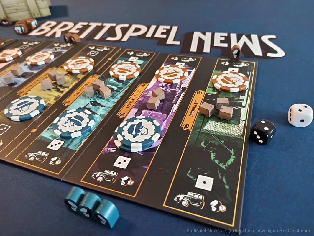 Wer einen Glücksfaktor in Brettspielen nicht mag, sollte lieber Abstand zu „Mob – Big Apple“ halten, da die Orte erwürfelt werden. Gefühlt ist dies aber eher selten spielentscheidend. Die Spielzeit mit etwas über 30 Minuten empfanden wir als genau richtig.