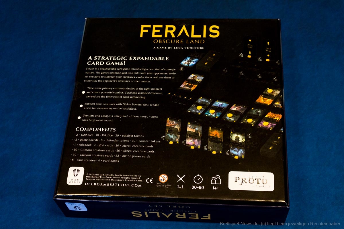 Der Kampfmechanismus mit Schnelligkeitswerten zwingt zu taktischen Timingüberlegungen das Abgleichen der Symbole macht den Spielfluss allerdings holprig und kleinteilig. Viele der Monster sind identisch, wodurch das tragende Element der Monsterfähigkeiten weniger spannend als erwartet ausfiel. Neuartig und innovativ ist der Inkubator, also das Ausbrüten der Monster. Schon beim Bestücken der Standees die Monsterseite zu wählen, den Kampf also vorausschauend zu planen, ist ein interessanter Aspekt in "Feralis“. Ideen und potenziell interessante Spielmechanismen sowie imposantes Artwork sind bereits im Prototypen erkennbar, so ganz rund ist das Ganze allerdings noch nicht.