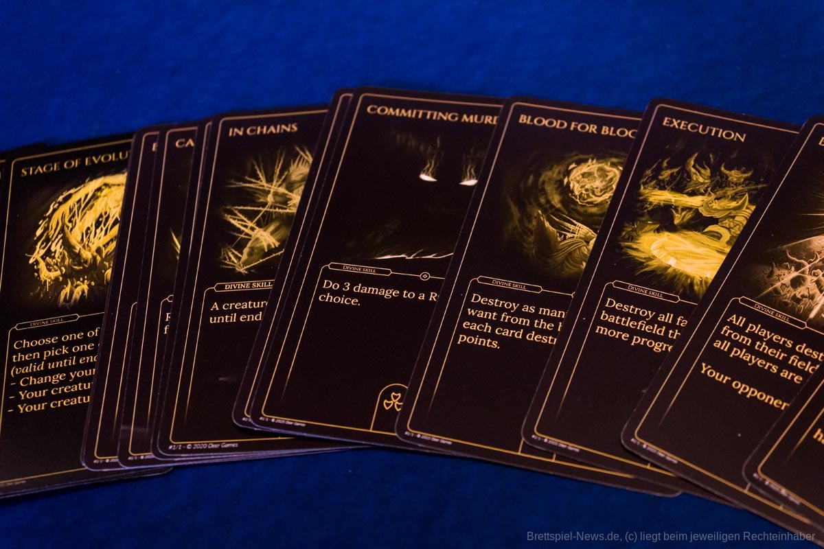Spielerisch ist es ein taktisches Haudrauf-Kartenbattle, dessen Mechanikbeschreibung des Deckbuilding im Grundspiel zunächst nicht ganz nachvollziehbar ist. Das Aesyr-Deck ist bereits zusammengestellt und wird während des Spiels lediglich durchgespielt. Es können keine neuen Monster aufgenommen werden und die anfängliche Auswahl an Divine-Karten, die jedes Spiel leicht in eine andere strategische Richtung lenken kann, ist meiner Meinung nach nicht in der Lage den Deckbuilding Begriff zu stützen. Nach dem Kennenlernen aller Aesyr-Decks ist es für Fortgeschrittene jedoch möglich, eigene Decks zusammenzustellen, deren Zusammensetzung in der Anleitung (noch nicht ganz nachvollziehbar) beschrieben wird.