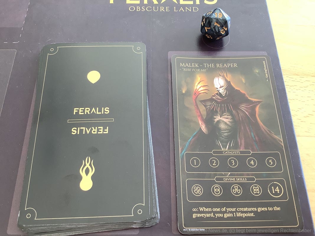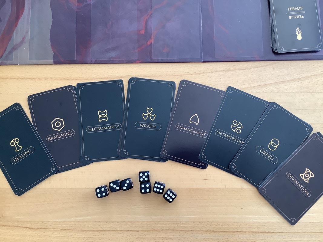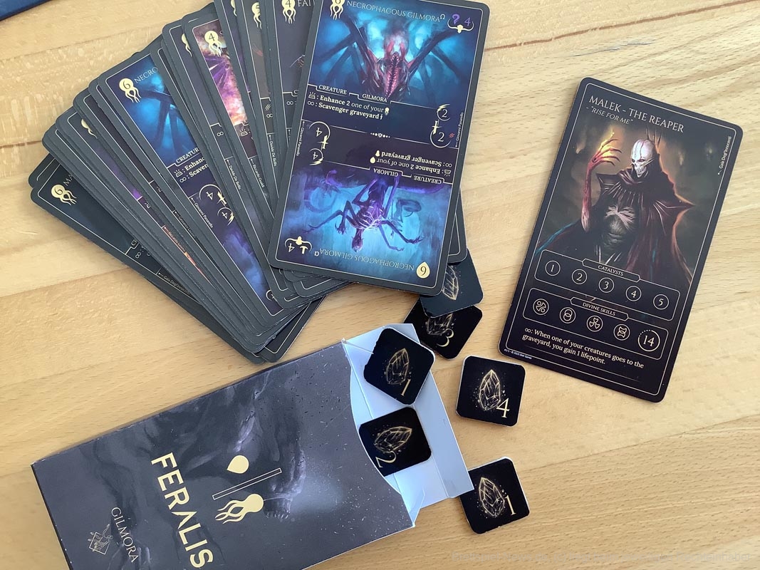 Generell geht es in "Feralis" darum, die Monsterkarten aus der Hand auf das Schlachtfeld zu bringen, um mit ihnen den gegnerischen Aesyr zu vernichten. Die Monster müssen jedoch zunächst im Inkubator über eine aufgedruckte Anzahl von Runden ausgebrütet werden, was durch Katalysatoren-Tokens beschleunigt werden kann.