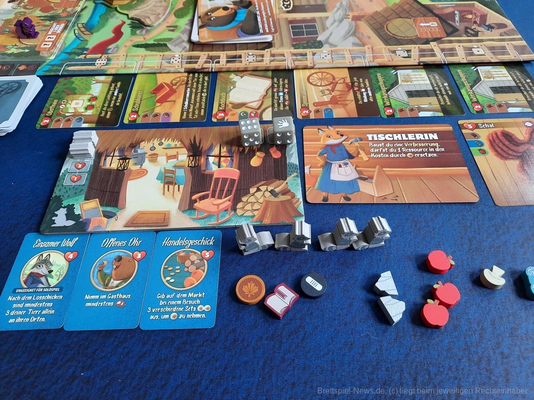 Aber das mal beiseite ist „Die Tiere vom Ahorntal“ ein gutes Euro Game. Die Ressourcenbeschaffung ist durch das Würfeln spannend und die ganze Wirtschaft ist komplex genug, dass auch erfahrene Spielerinnen und Spieler Spaß am Geschehen haben können. Durch die vielen Reisenden-Karten gibt es eine hohe Varianz und die macht Lust, es immer wieder zu spielen. Die Aufmachung finde ich äußerst gelungen. Es verbreitet diese wohlig warme Stimmung - ein Spiel zum Einkuscheln.