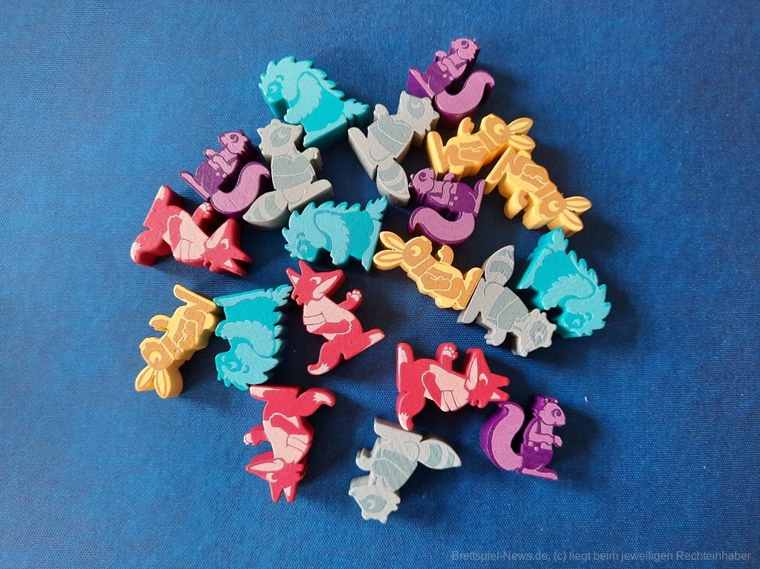 Oft ist die einzige Interaktion in Worker-Placement-Spielen das Wegschnappen von Einsatzfeldern. Das ist hier nicht so. Es können auch Tiere von verschiedenen Familien auf einem Feld stehen. Das macht das Spielgeschehen zwar so freundlich wie die Illustration auf dem Cover, sorgt aber auch dafür, dass es mir fast egal ist, was die anderen am Tisch so treiben. Es gibt Verbesserungen, die sich auf die Karten anderer Personen beziehen, sodass es zumindest kleine Berührungspunkte untereinander gibt, aber die sind doch recht selten.
