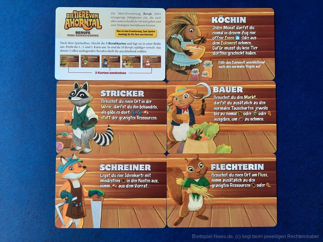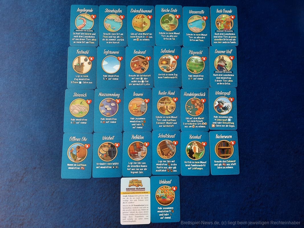 Zum einen Berufe, die jeder Tierfamilie noch eine besondere Fähigkeit geben. Zum anderen die Traum-Karten. Das sind kleine, geheime Ziele, die jede Runde erfüllt werden können, um Siegpunkte dafür zu bekommen.