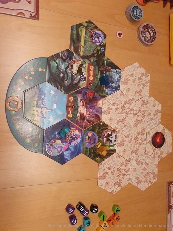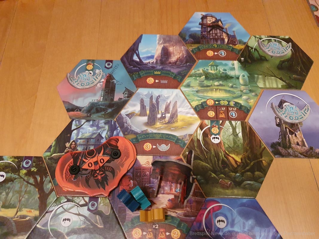Auch die Fähigkeiten der Ortsplättchen sind schnell bekannt und in ihren Mechanismen erschöpfend. Hier sind auch mit variiertem Aufbau des Spielbrettes nach mehreren Spielen wenig Neues zu entdecken.