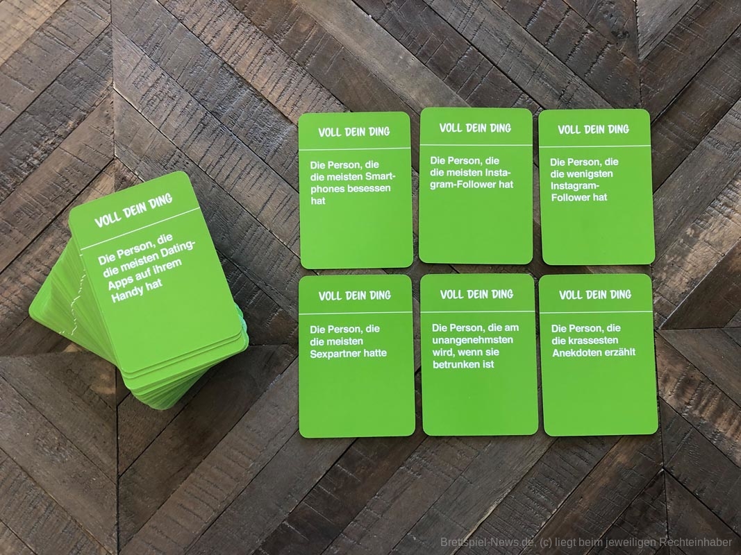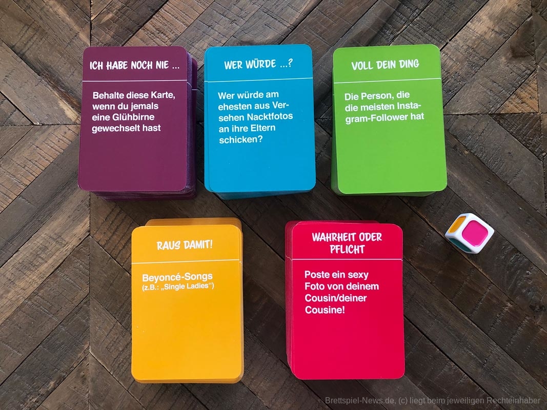 Gerade aufgrund aktueller Diskussionen zum Thema Social Media sehe ich eine Karte wie „Der Spieler rechts von dir darf eine Insta-Story über dich machen - Inhalt egal. Er darf alles posten und du musst es für 15 Minuten online lassen“ als sehr kritisch. Wie wir alle wissen, das Internet vergisst nicht. Ich denke, für junge Erwachsene, die noch nicht so viele Spiele dieser Art gespielt haben, kann es ein lustiger Abend werden, aber bestimmt nur so lange bis die Pflichtaufgabe „Gib der Person neben dir dein Handy. Sie darf in deinem Verlauf eine Unterhaltung aussuchen und diese laut vorlesen“ kommt.