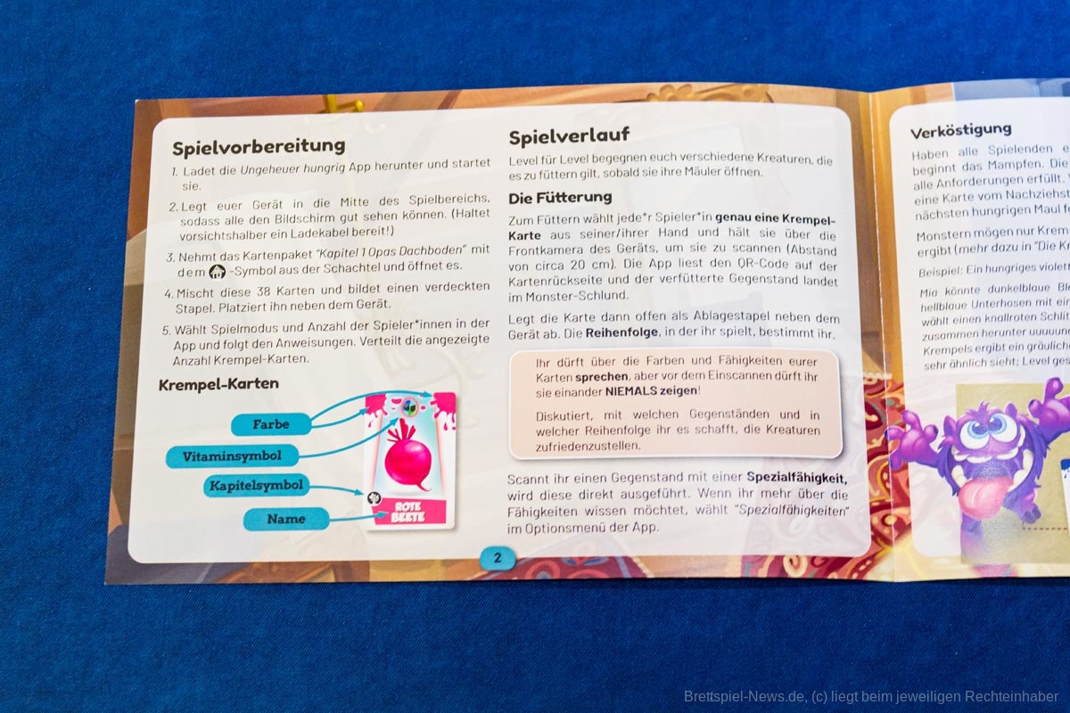 Zudem kann etwas geplant werden, denn die zukünftigen Ungeheuer stehen in einer Reihe bereits parat und alle wissen, was auf sie zu kommt. Zudem können mehr Karten in der Hand durch gezieltes Füttern der Wesen den Unterschied zwischen Scheitern und Triumpf ausmachen. Wer jedoch mit kleineren Kindern spielt, wird das wenig nützen.