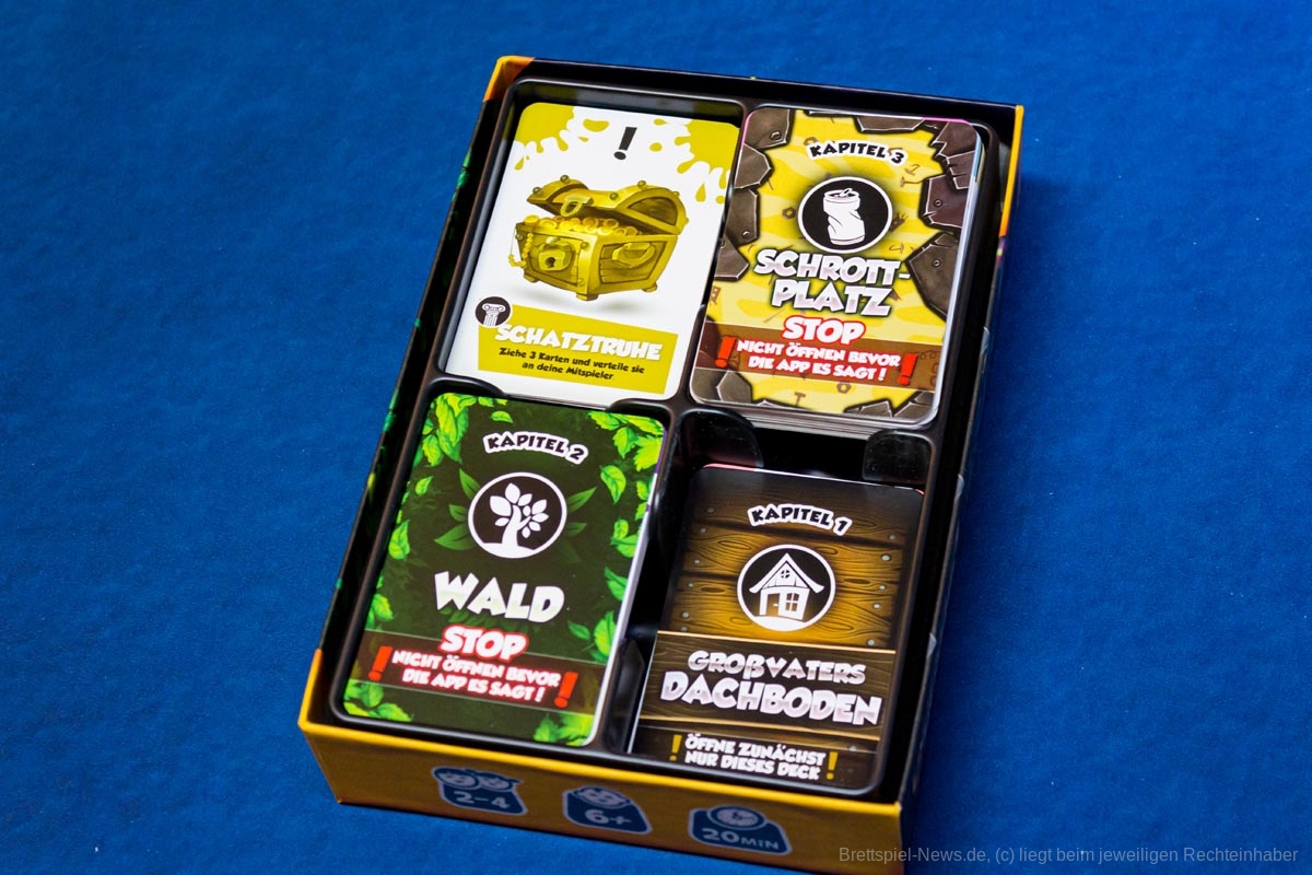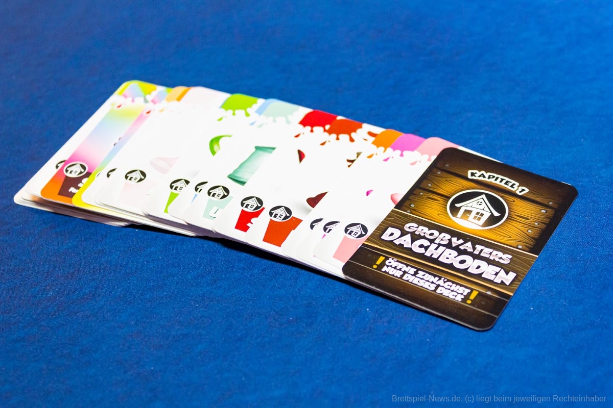 Abseits dessen gibt sich das Spiel jedoch sehr viel Mühe für Abwechslung zu sorgen. Neben den vier Kapiteln und zusätzlichen Karten im Deck, kommen immer wieder neue Spielaspekte in die Partie. So gibt es im späteren Spiel Ungeheuer mit großen Ohren, die wollen, dass die beteiligten Personen schweigen, ansonsten ist die Runde verloren. Kaninchen dürfen nur mit Vitaminen gefüttert werden, was die Kartenhand etwas aufräumen kann.