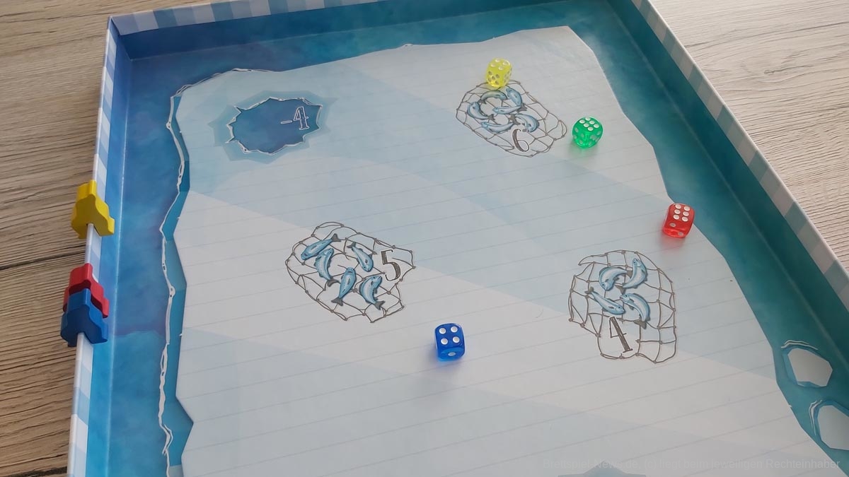 Zusätzlich drängt sich für mich die Frage auf, weshalb sich die Robben als Punkte-Marker ein Rennen liefern, ansonsten jedoch thematisch oder grafisch in keiner Weise vertreten sind. Dadurch wirkt das Spiel trotz der tollen Spielschachtel sehr abstrakt und es findet kaum motivierende Immersion statt. Auch wenn die reine Freude am Würfeln und Punkte sammeln vielen Kinder bereits ein schönes Spielgefühl beschert, wäre hier meiner Meinung nach mehr möglich gewesen.