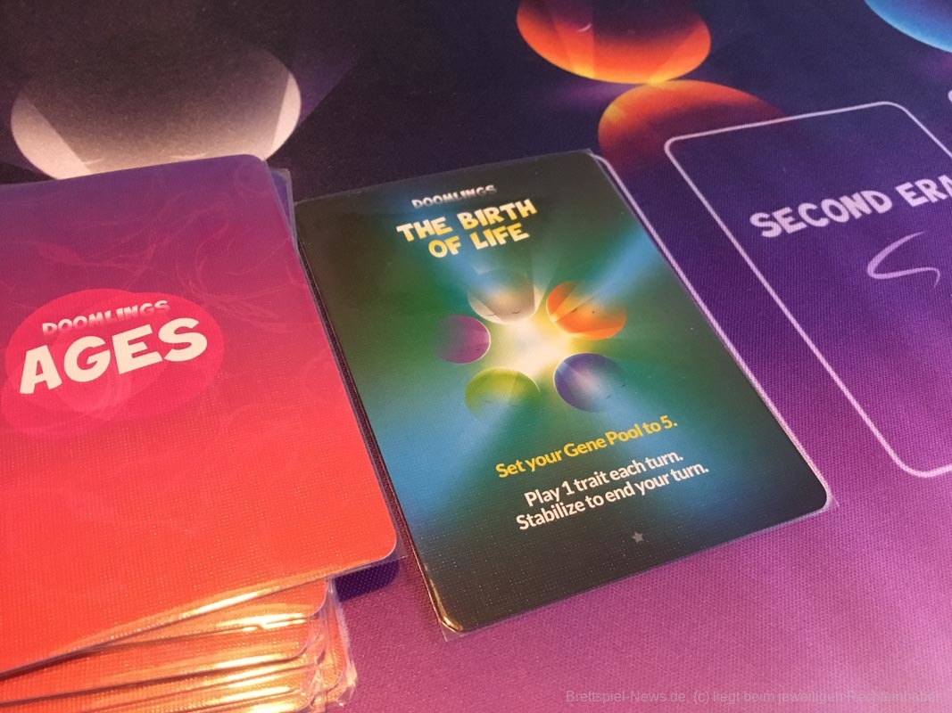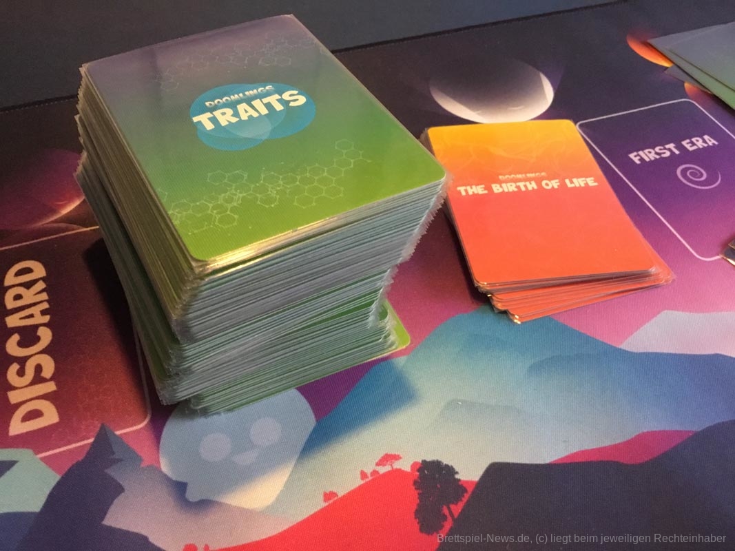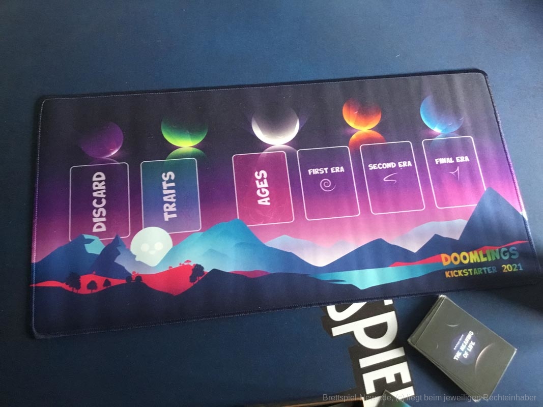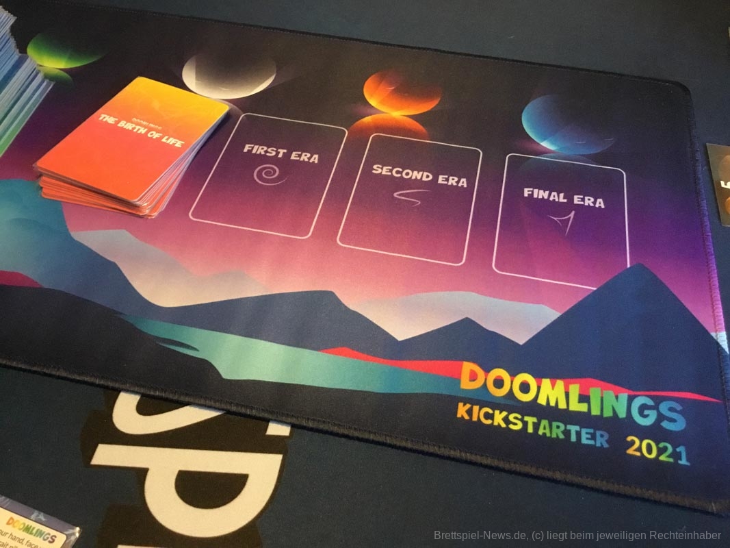 Und auch die Spielmatte ist nur für die Optik und erhöht den Preis drastisch. Eine handvoll zusätzlicher Karten ist in der Kickstarterversion enthalten, die den Spielspaß ebenfalls kaum vergrößern. Letztlich bleibt es aber eine reine Punktejagd und da genügt eigentlich auch das Grundspiel. Als Auftakt oder Absacker eines Spieleabends ist „Doomlings“ bestens geeignet. Ich würde dreieinhalb von fünf Darwins verleihen.