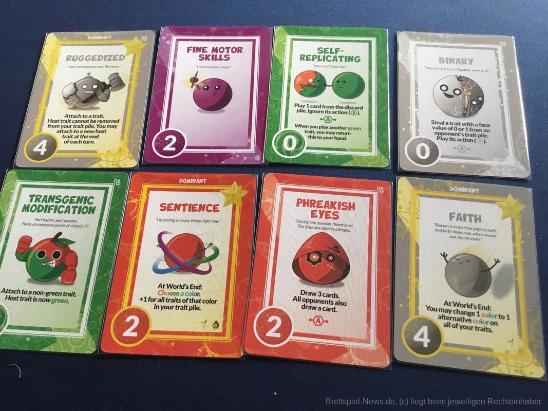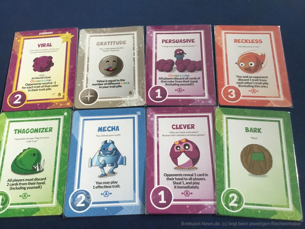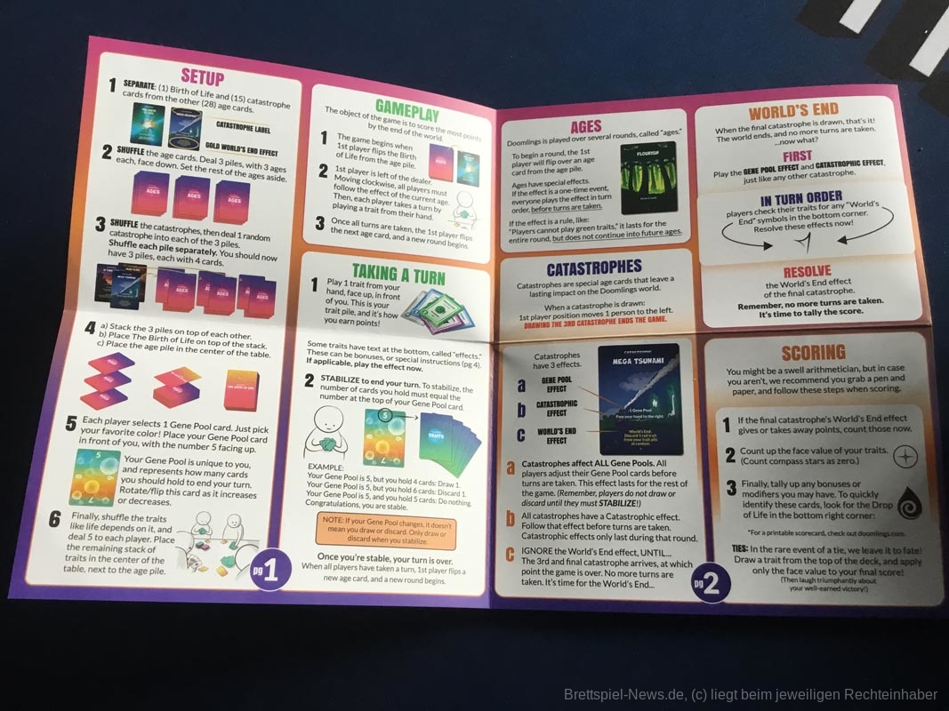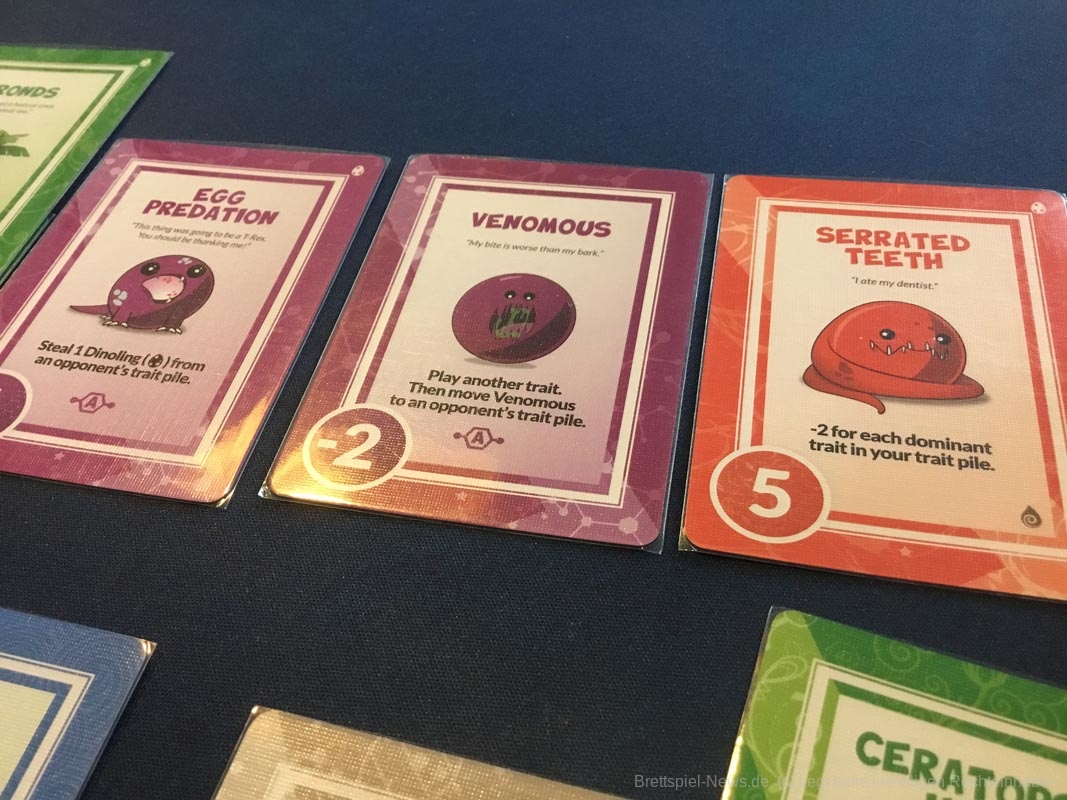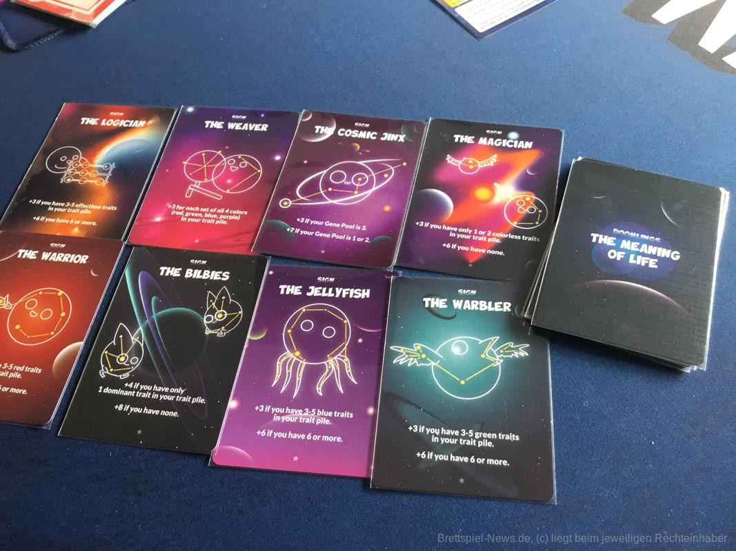 Und auch die Spielmatte ist nur für die Optik und erhöht den Preis drastisch. Eine handvoll zusätzlicher Karten ist in der Kickstarterversion enthalten, die den Spielspaß ebenfalls kaum vergrößern. Letztlich bleibt es aber eine reine Punktejagd und da genügt eigentlich auch das Grundspiel. Als Auftakt oder Absacker eines Spieleabends ist „Doomlings“ bestens geeignet. Ich würde dreieinhalb von fünf Darwins verleihen.