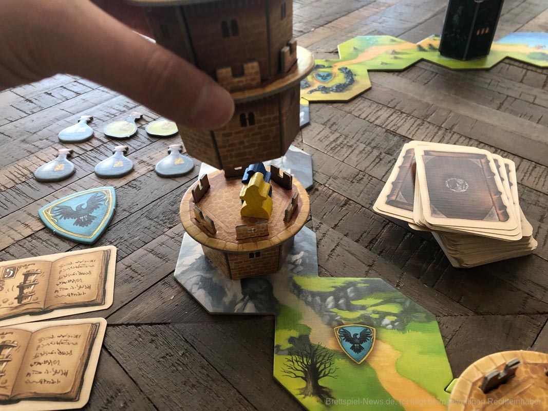 Beim Bewegen der Türme ist zu beachten, dass entweder einzelne Turmsegmente oder ganze Türme bewegt werden dürfen. Werden Turmsegmente übereinander gestapelt und dabei Magier eingeschlossen, so darf eine eigene Zaubertrankflasche aufgefüllt werden.