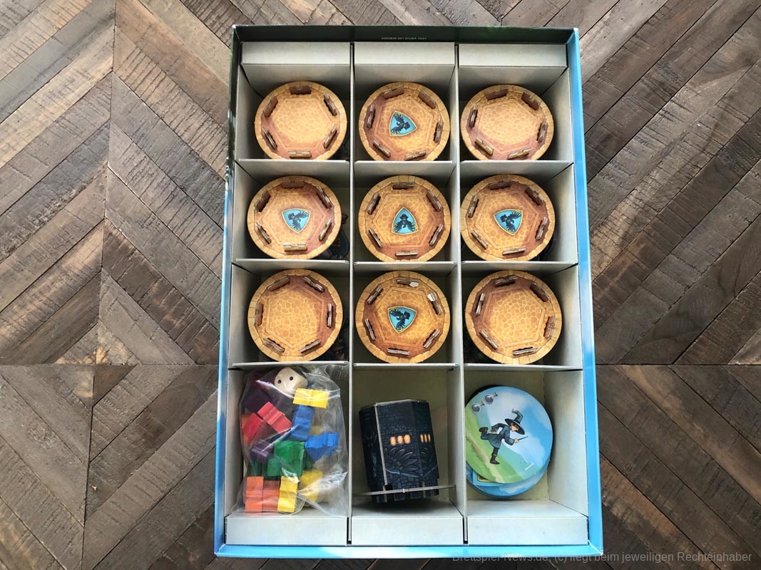 Ohne große Erwartungen haben wir uns an das Spiel gemacht. Die Regeln sind simpel und leicht zu verstehen. Das Zusammenbauen der Burgen war etwas zeitaufwändig und leider sind uns direkt beim Herausnehmen der vorgestanzten Teile ein paar Turmzacken kaputt gegangen. Diese sind so klein vorgestanzt, dass es fast unmöglich ist, sie unbeschadet herauszutrennen. Sind die Türme aber erstmal zusammengesteckt, sind diese stabil und stehen sicher auf dem Spielfeld.