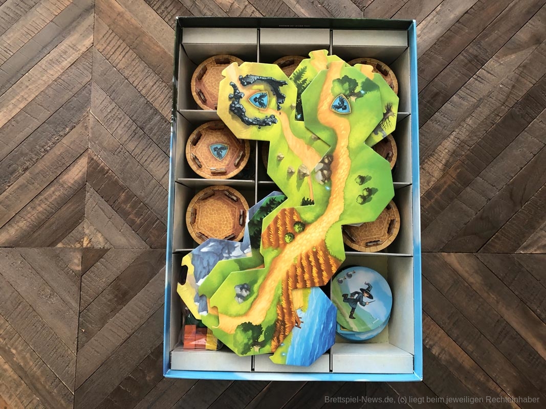 Die kleinen Magierfiguren sind aus Holz. Das Spieltableau wird zusammengesteckt und hat bisher alle Partien gut überstanden. Dann ging es auch direkt los und ich kann sagen - es macht auch unter Erwachsenen Spaß! Die Kombination aus Rennen, Gedächtnistraining (Wo war mein Magier noch gleich? War er im zweiten Turmsegment?) und einer großen Portion Schadenfreude machen „Die wandelnden Türme“ abwechslungsreich und kurzweilig. Gerade wenn die Magier kurz vor der Rabenburg stehen und die passende Bewegungskarte auf der Hand ist, kommt natürlich die Konkurrenz und rückt die Rabenburg weiter oder aber schließt den Magier noch mit einen Turm ein. Der Ärger ist hier natürlich vorprogrammiert.