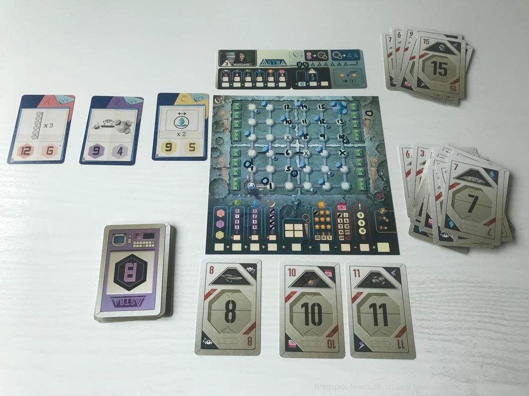 Du kannst Welcome To The Moon auch alleine spielen und gegen ASTRA (Astral Space Technology & Robots by Alexis inc.) antreten. Die Raumfahrtbehörde hat mehrere Mitarbeiter und, je nachdem wie gut oder schlecht Du abschneidest, bekommst Du andere Gegner. Es gibt insgesamt acht Schwierigkeitsstufen. Der Solomodus spielt sich flüssig und unterscheidet sich im Wesentlich nicht vom Spiel mit mehreren Personen am Tisch.