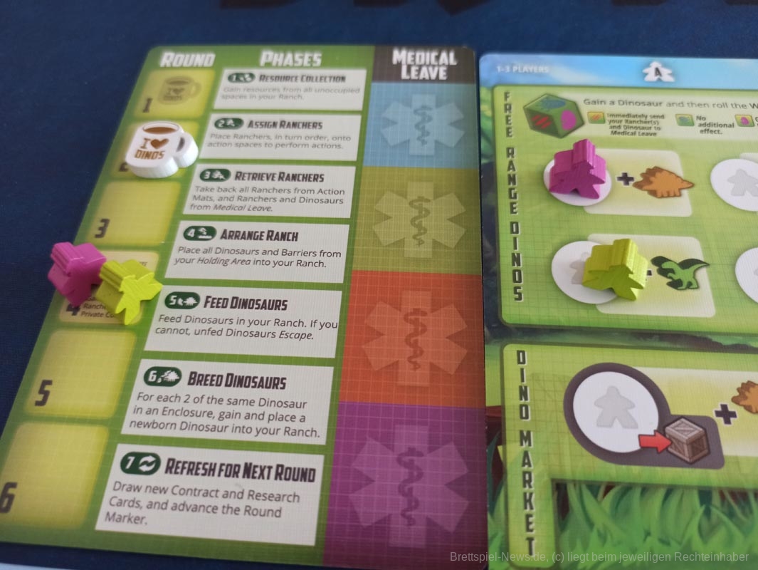 Alles in allem hat uns das Spiel überzeugt. Wir hatten unsere Freude daran, zu sehen wie unsere Ranch im Miniaturformat aufblüht und unsere Mini-Dinos sich auf dieser ausbreiten. Das kompakte Format lädt hinzu dazu ein, dieses Spiel mit auf Reisen zu nehmen.