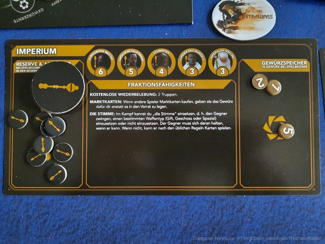 „Dune: Ein Spiel um Macht und Intrigen“ ist ein weiteres Spiel zu dem Science-Fiction-Universum von Dune. Die Illustrationen und Mechaniken sind passend gewählt und fühlen sich stimmig an. Inwieweit diese inhaltlich korrekt sind, entzieht sich jedoch meinem Kenntnisstand. Die Hauptmechanik in diesem Spiel ist Ressourcenmanagement kombiniert mit Area Control. Die Regeln sehen mit den sieben Phasen komplizierter aus als sie sind und die meisten Phasen können schnell durchgespielt werden.