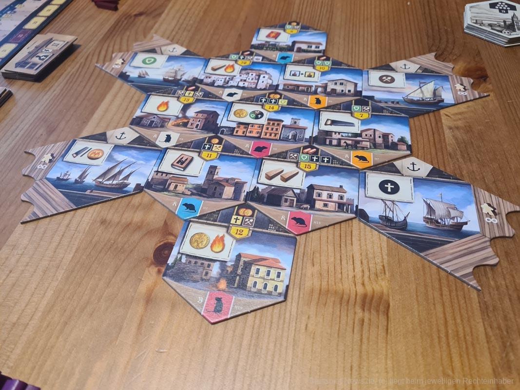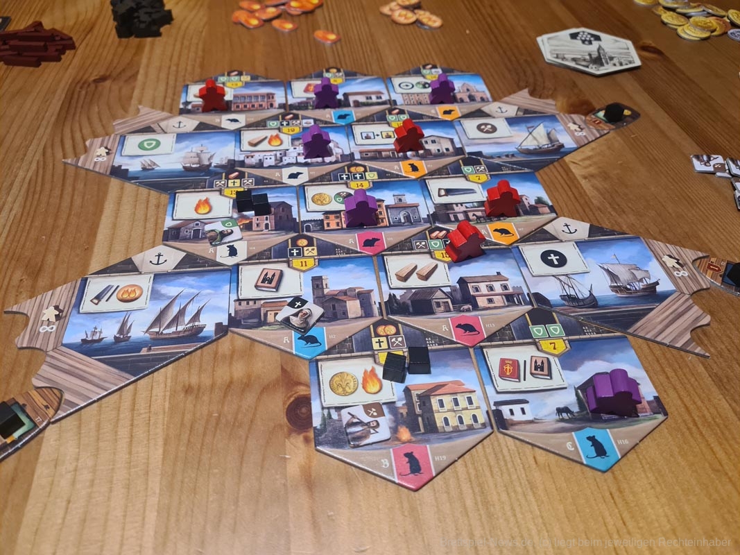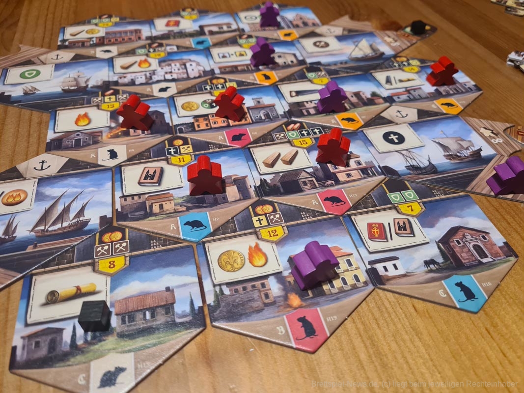 Die andere Seite der Medaille ist nämlich, dass „Messina 1347“ ein wirklich gutes Spiel ist. Alle Spielmechaniken arbeiten absolut geschmeidig in Harmonie, die Regeln sind in beinahe allen Fällen vollkommen intuitiv und leicht zu merken, und durch die sechs Spielrunden hat es eine angenehme Spieldauer.