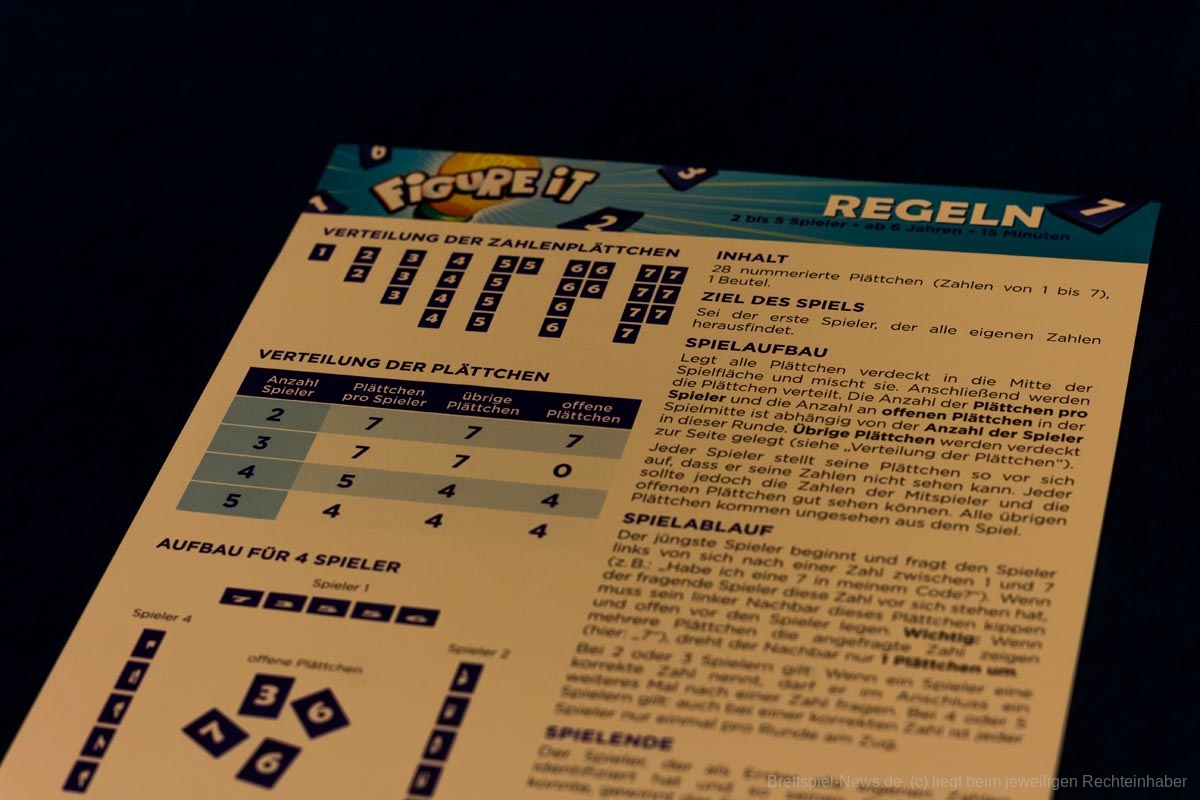 Der Mix aus Kombinationsgeschick, einfachen Regeln und einem kurzweiligen Setting zeichnen „Figure it“ aus. Die Regeln sind kurz und knapp beschrieben, sodass es direkt los gehen kann. Gerade für Kinder ist dies ein klarer Vorteil, denn lange und komplexe Regeln möchten die wenigsten gerne hören. Die Spielmechanik an sich ist nichts neues, aber doch immer wieder für ein paar schnelle Runden Gedächtnistraining unterhaltsam. So wird spielerisch ganz nebenbei die Kombinationsfähigkeit und das logische Denken geschult.