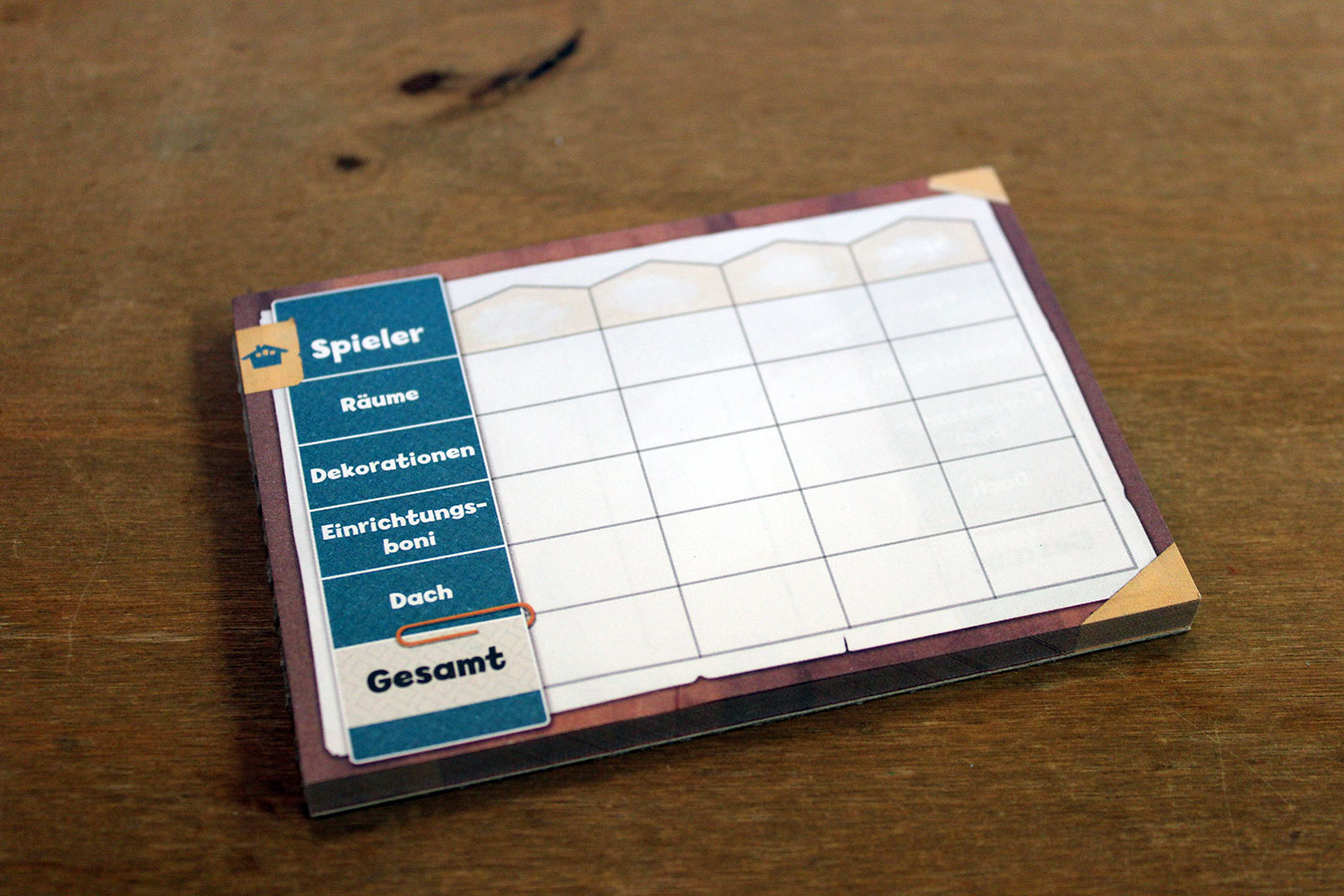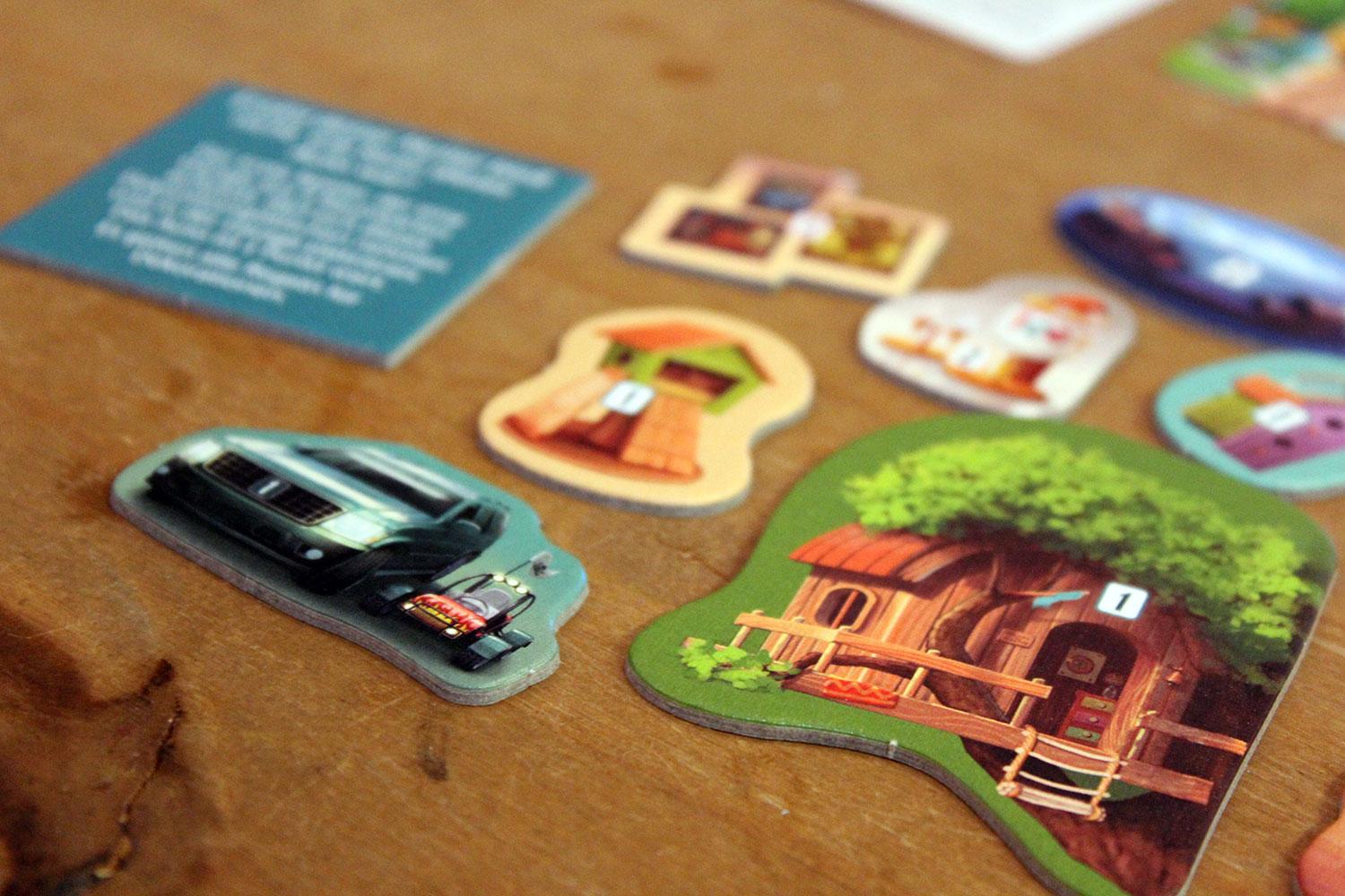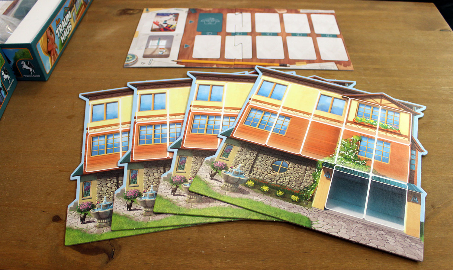 Mit Spezialkarten können Räume aufgewertet werden und bringen dann zusätzliche Punkte. Zudem müssen Dachkarten gesammelt werden. Am Spielende können darüber zusätzliche Punkte gesammelt werden. Als letztes verbergen sich in den Spezialkarten noch “Werkzeuge”, die unter anderem das Tauschen von Karten ermöglichen.