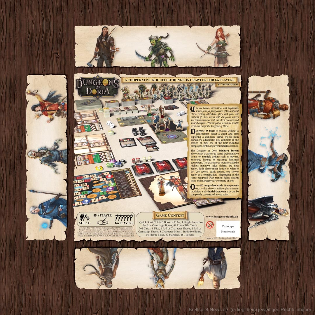 Die Geschichte steht in „Dungeons of Doria“ nicht im Vordergrund. Meist beschreibt sie in 2-3 Absätzen, weshalb ihr die nächsten Monster kurz und klein hauen müsst. Interessant hingegen ist, dass sich die Geschichte im Laufe der Kampagne ändern kann, je nach Ausgang der letzten Mission. Das Gameplay hingegen ist gut durchdacht, das Initiative-Brett ist ein spannendes und innovatives Spielelement und die vielen Monster bestechen durch ihre unterschiedlichen Fähigkeiten.