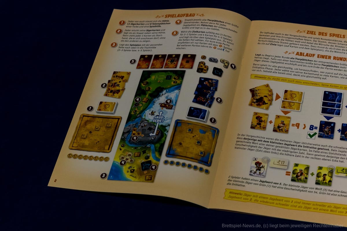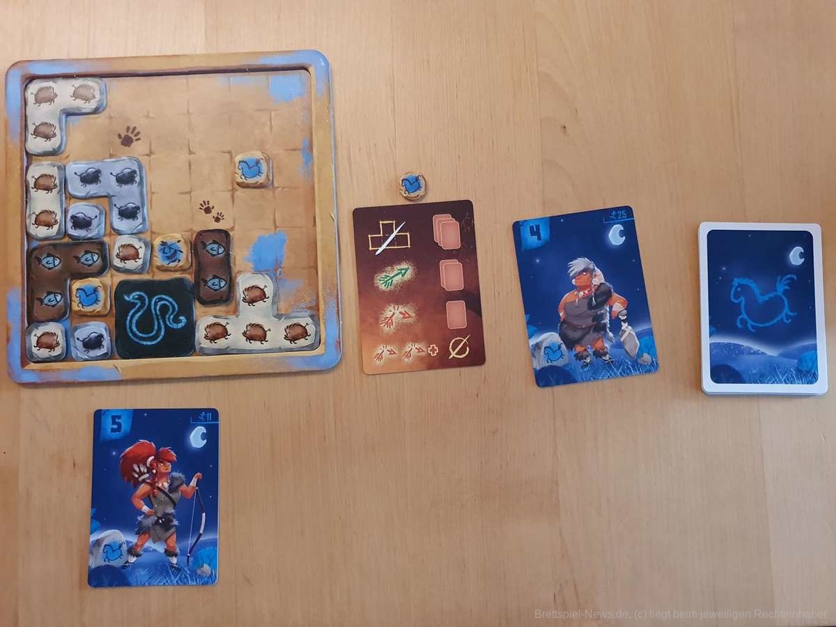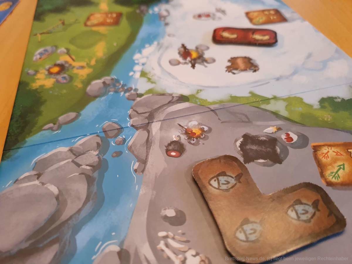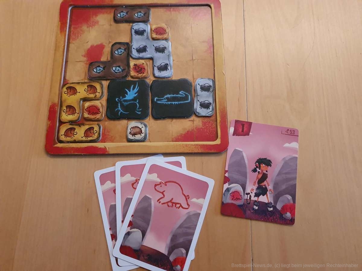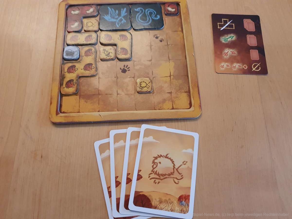 So füllen nun alle Personen nach und nach ihre Höhlen und versuchen dabei, die Platzierung der Tierplättchen an den ausliegenden Zielen zu orientieren.