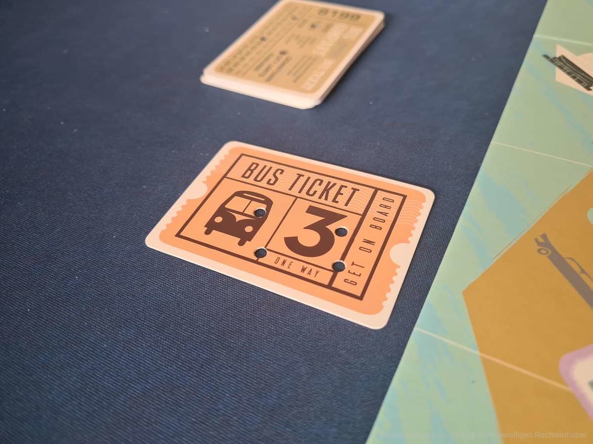 Die Gestaltung wirkt sehr stimmig und verleiht „Get on Board“ einen individuellen Charakter, der zum Spielgeschehen passt. Einzig und allein die Spielsteine bringen ein paar Probleme mit sich, da insbesondere Personen mit visuellen Einschränkungen und/oder Farbschwächen kaum Möglichkeiten haben, „Get on Board“ zu spielen. Besonders bei größeren Gruppen kann das Spielfeld sehr schnell wuselig werden, sodass man kaum noch auseinanderhalten kann, was nun freie Straßen sind und wo welcher Bus entlangfahren kann. Es fehlen Symbole oder individuelle Formen damit auch farbenblinde Personen nicht zwingend vom Spiel ausgeschlossen werden.