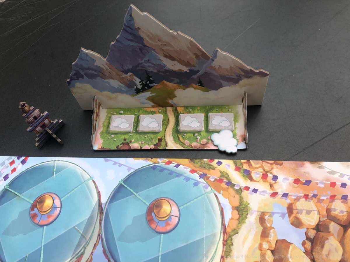 Zum Spiel selbst muss ich sagen, dass es gar nicht so simpel ist wie es schien. Die Spielmechanik an sich schon, aber die Idee „Nahrung vom Karren holen und beim nächsten einfach wieder abladen – so schwer kann es ja nicht sein“ war zwar naheliegend, aber weniger gut umsetzbar. Es spielen doch viele Faktoren eine Rolle, um zu punkten. Hat der Wagen, der vorbeikommt, die passende Nahrung für dich? Und umgekehrt, darf ich meine Nahrung auf den Wagen legen oder ist genau diese Nahrung nicht erlaubt? Gerade letzteres hat mir des Öfteren einen Strich durch die Rechnung gemacht, da zwischenzeitlich Nebel aufgetreten ist und meinen Plan durchkreuzt.