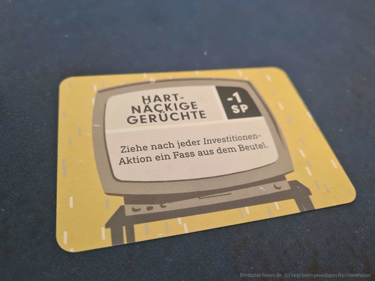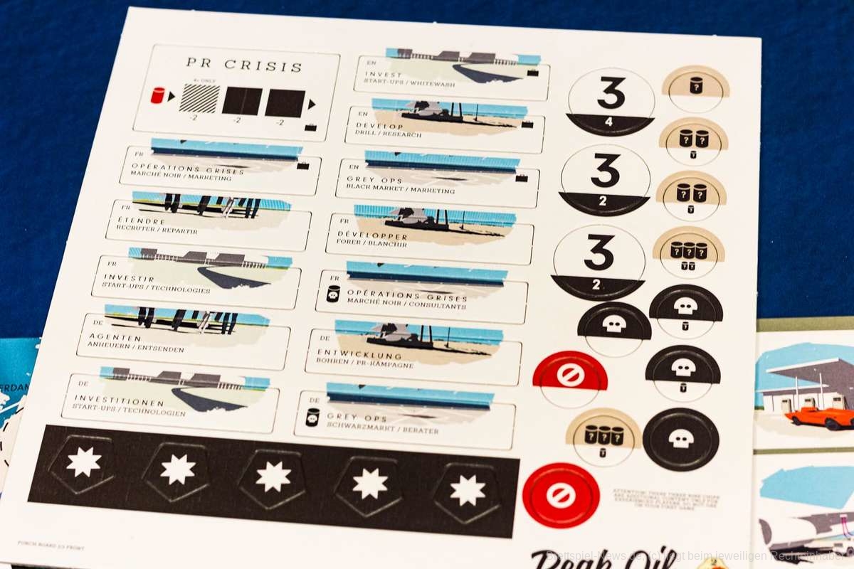 Positiv aufgefallen ist uns, dass das Regelbuch mit einigen humorvollen Einlagen untermauert wurde, die bewiesen, dass sich „Peak Oil“ selbst nicht wirklich ernst nimmt. Leider übertrug sich dieser Humor aber nicht auf das Spielfeld, wodurch der Spielablauf an sich ein eher strikteres Wirtschaftsspiel ist. All die von mir angesprochen Punkte müssen per se nicht negativ sein, beschreiben in ihrer Gesamtheit aber ein Spiel, das schon eine sehr spezielle Zielgruppe ansprechen möchte.