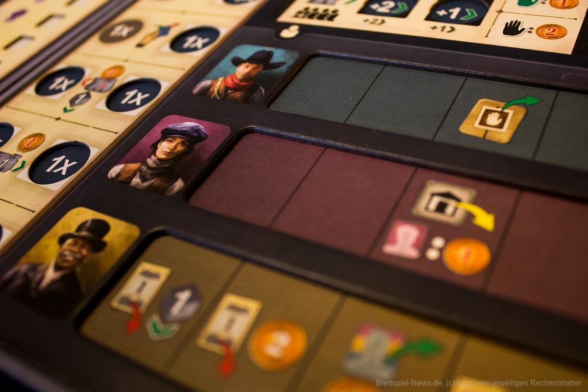 Die Optik des Spielbretts wurde natürlich ebenfalls überarbeitet, allerdings finden wir diese etwas unübersichtlicher als das Original. Eine Änderung, die wir sehr begrüßen, ist jedoch, dass nun Banditen statt Angehörige der indigenen Urbevölkerung Amerikas gefangen genommen werden. Bezüglich dem sonstigen Spielmaterial sehen die neuen Meeple mit ihren stilvollen Cowboyhüten toll aus und die kleinen Säckchen für die Plättchen werten das Spiel zusätzlich auf. Vor allem haben es uns aber die neuen Double Layer-Boards angetan, auf die wir nicht mehr verzichten wollten.