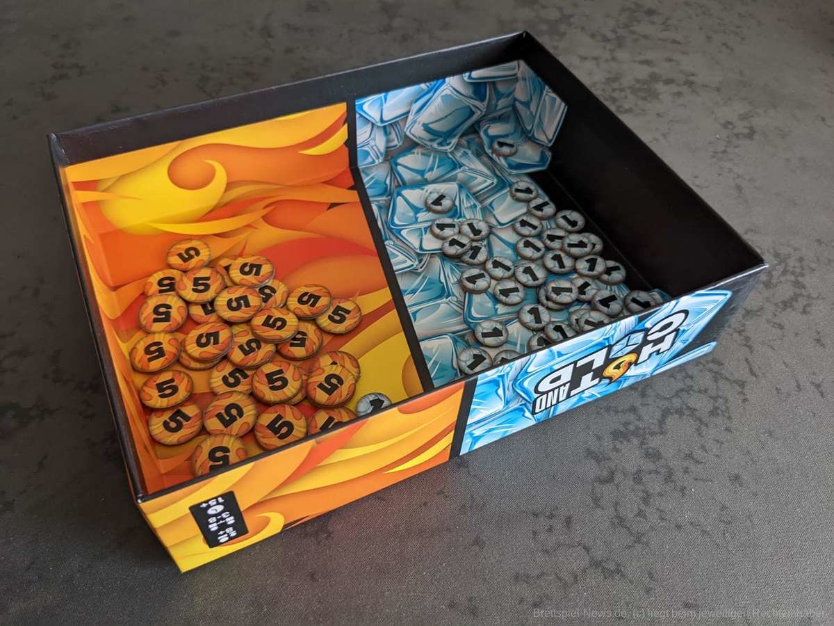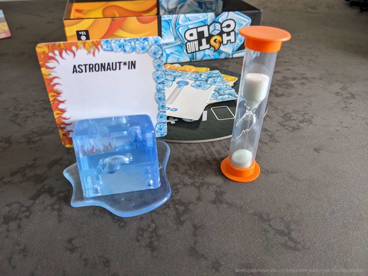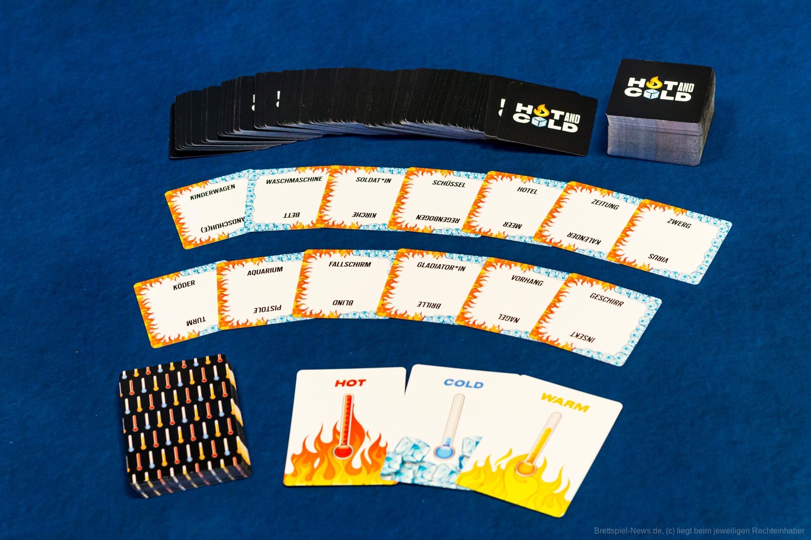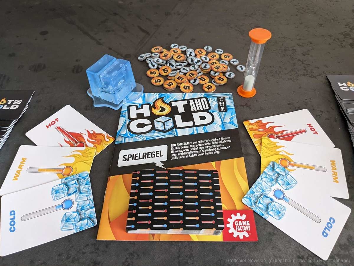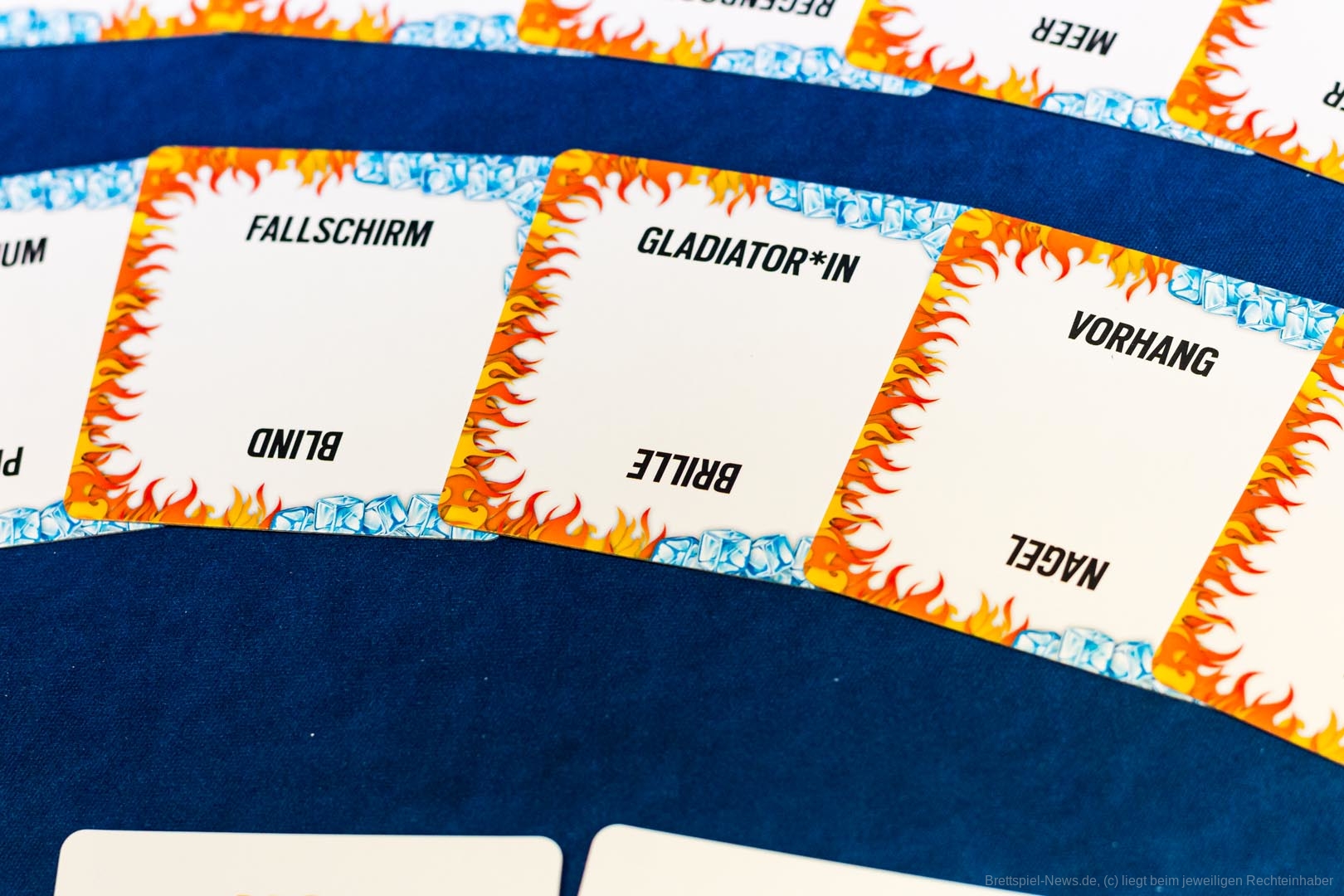 „Hot and Cold“ begrüßt uns erst einmal mit einer tollen Ausstattung und einer Vielzahl an Begriffskarten. Die Qualität der Karten und Papptokens konnte uns überzeugen und der riesige Plastikeiswürfel zum Halten der Begriffskarten ist ein Hingucker auf dem Tisch. Ob es den riesigen Plastikwürfel gebraucht hätte, lassen wir mal dahingestellt, denn für das Spiel ist er eigentlich nicht nötig und ein etwas kleinerer Halter hätte vermutlich den gleichen Effekt gehabt.