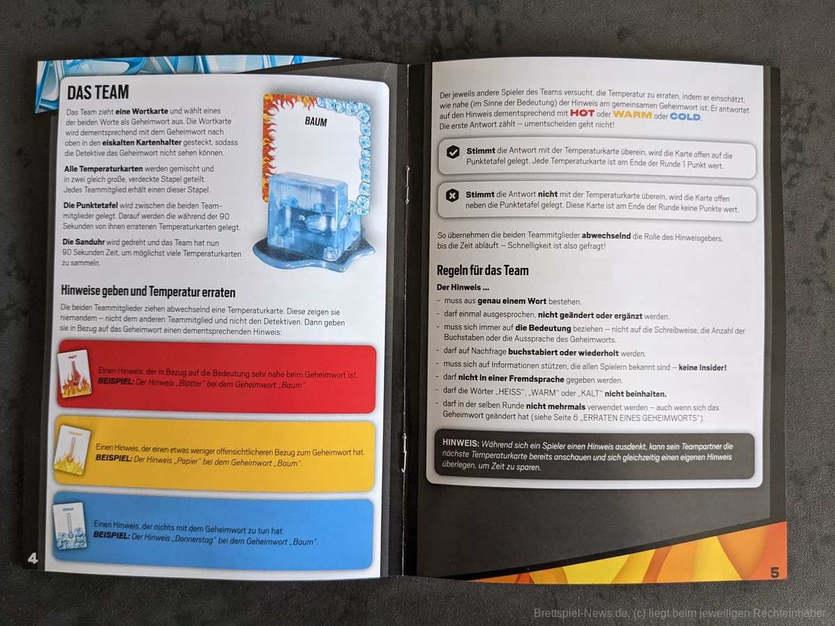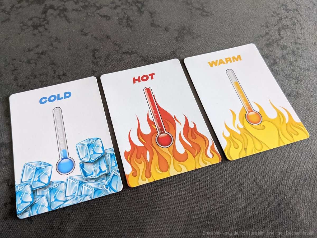 Der Einstieg ins Spiel ist denkbar einfach und das Spiel daher für jede Gruppe geeignet. Da das Spiel perfekt mit Hilfe einer Proberunde erklärt werden kann, konnten wir auch Regelmuffeln das Spiel schnell schmackhaft machen. Was uns und unseren Spielegruppen direkt negativ aufgefallen ist, sind die Begriffe „Hot“, „Warm“ und „Cold“ in einem deutschen Spiel. Hier hätte man einfach die deutschen Bezeichnungen nutzen können. Dies mag für manch einen kein Thema sein, für uns hat dies das Spielgefühl jedoch getrübt. Da man alle anderen Karten auch übersetzt hat, wirkt die Entscheidung, diese englischen Begriffe beizubehalten, etwas komisch.