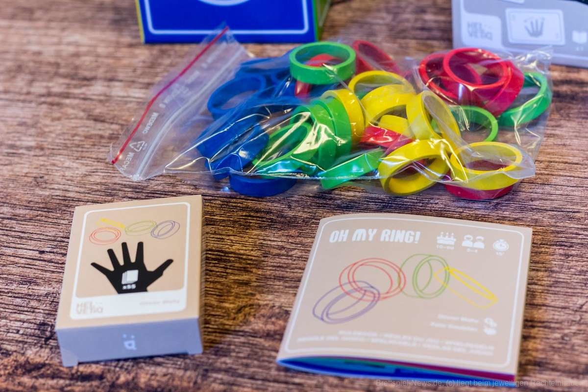 Durch die Geschwindigkeit kommt dann aber erst der Spielspaß mit hinzu, man möchte ja natürlich vor den Anderen die Aufgabe lösen. Rutschen bei den Anderen dann die Ringe runter lässt es sich leicht drüber lachen. Aber aufgepasst…auch die eignen Ringe können sehr schnell runterrutschten. Für mich ist „Oh my Ring“ ein lustiges kurzweiliges Spiel was einen seine eigenen Grenzen der motorischen Fähigkeit schneller aufzeigt als einem lieb ist. Es kommt sicher ab und an wieder auf den Tisch, jedoch eher als kleiner Einstieg für einen Spieleabend oder wenn ein bisschen Aktion rein soll.