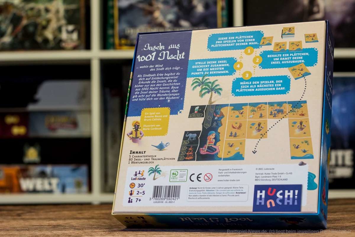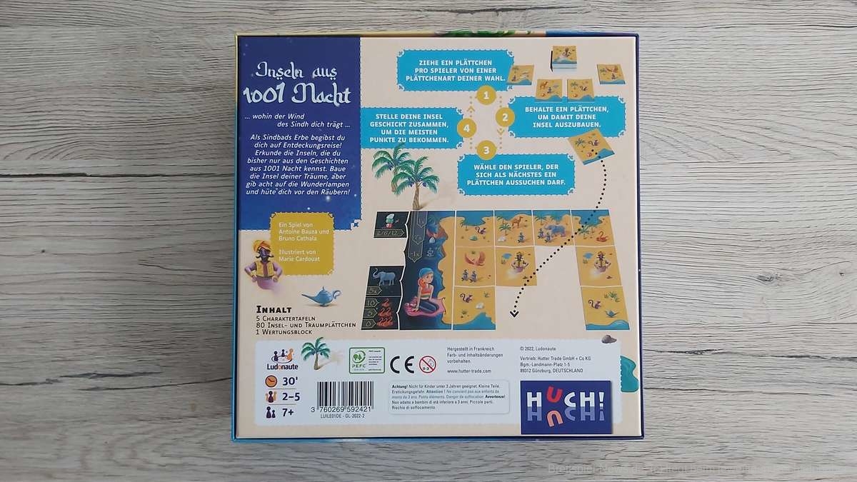 Schlüpft in die Rollen der Erben Sindbads und entdeckt die Inseln aus 1001 Nacht. Unterschiedliche Tiere und Edelsteine, aber auch Räuber und Flaschengeister werden euch begegnen. Kombiniert in diesem Plättchen-Legespiel die Inseln clever mit euren Traumplättchen und die ruhmreichste Trauminsel wird die eure sein.