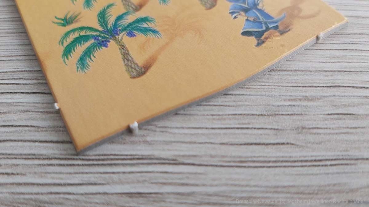 Leider ließ sich das Spielmaterial bei uns nicht problemlos aus den Bögen trennen. Die abstehenden Reste an den Plättchen empfanden wir während des Spiels als etwas störend.