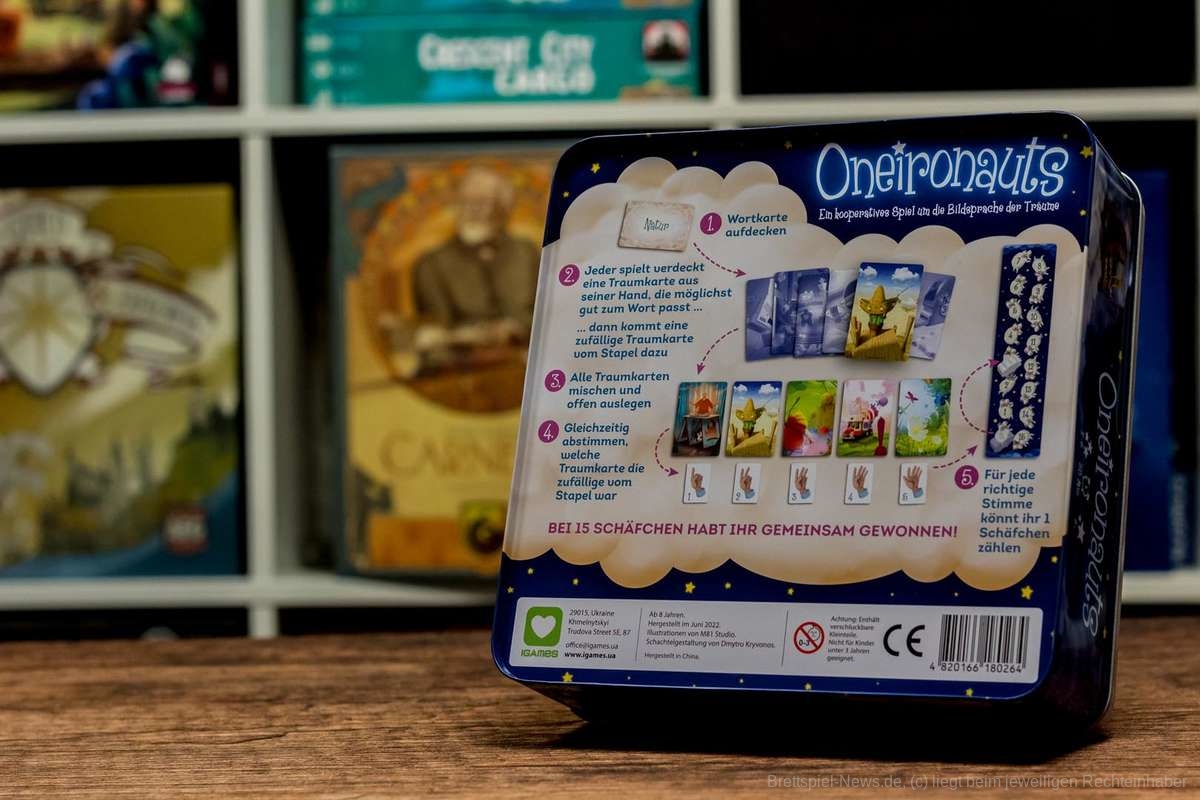 IGAMES ist ein Verlag aus der Ukraine, der dem aktuellen Krieg trotzt, indem er weiter Spiele veröffentlicht. Demzufolge muss ich im Sinne der Transparenz gleich vorweg sagen, dass diese Besprechung des Spiels emotional aufgeladen ist. Ein Spiel aus einem Land im Krieg, das die Prämisse hat in Träume abzutauchen, zeigt einfach die Stärke des Mediums Brettspiel auf traurig schöne Art und Weise. „Oneironauts“ ist ein kooperatives Spiel. 2 bis 6 Personen versuchen in rund 30 Minuten gemeinsam zu gewinnen. Dies gelingt, indem ihr die Karte herausfindet, die nicht von einem Mitspielenden abgelegt wurde.